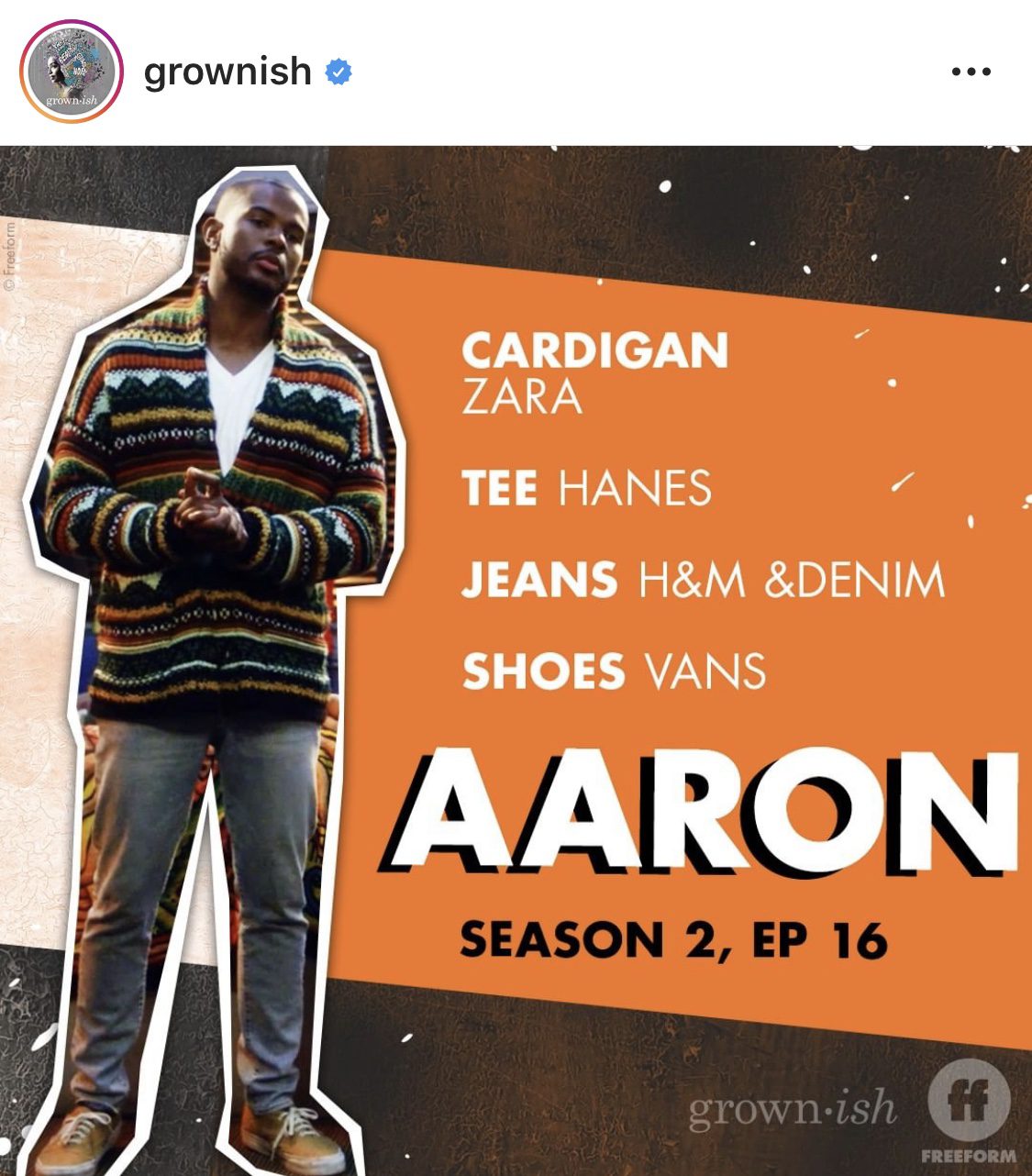 Aron-The campus activists, that values the political and social change of African American’s, as well as cultural appropriation. His style is modernized with comfortable pieces on the show.
