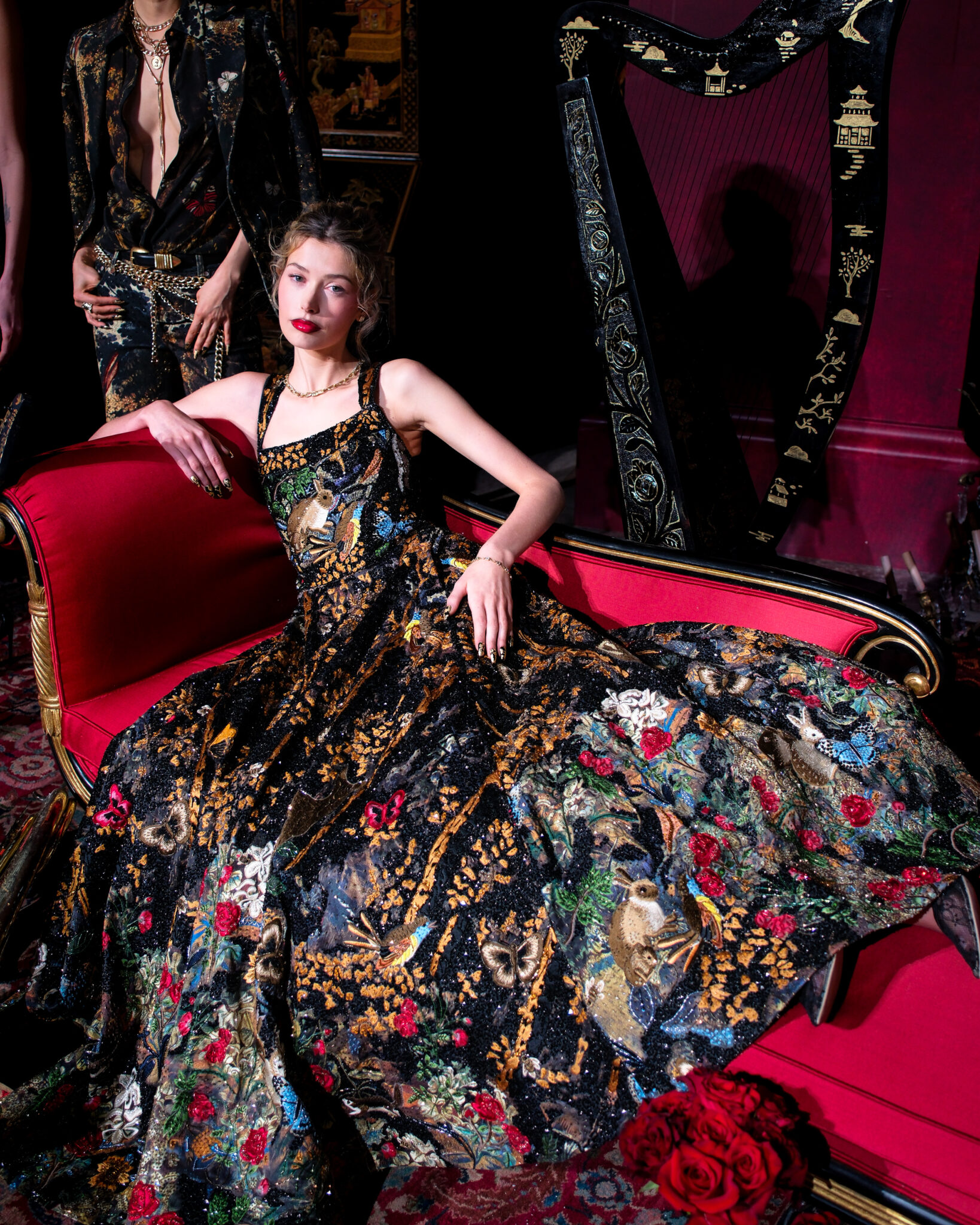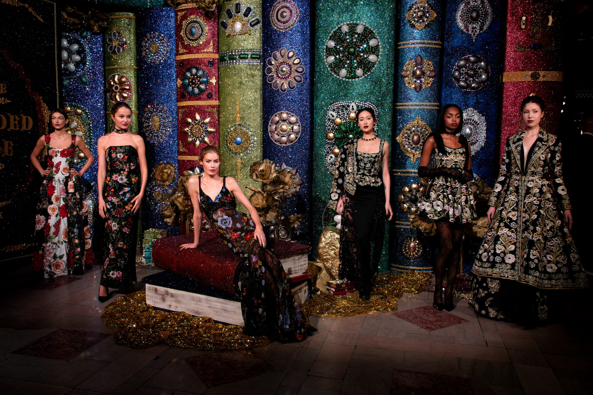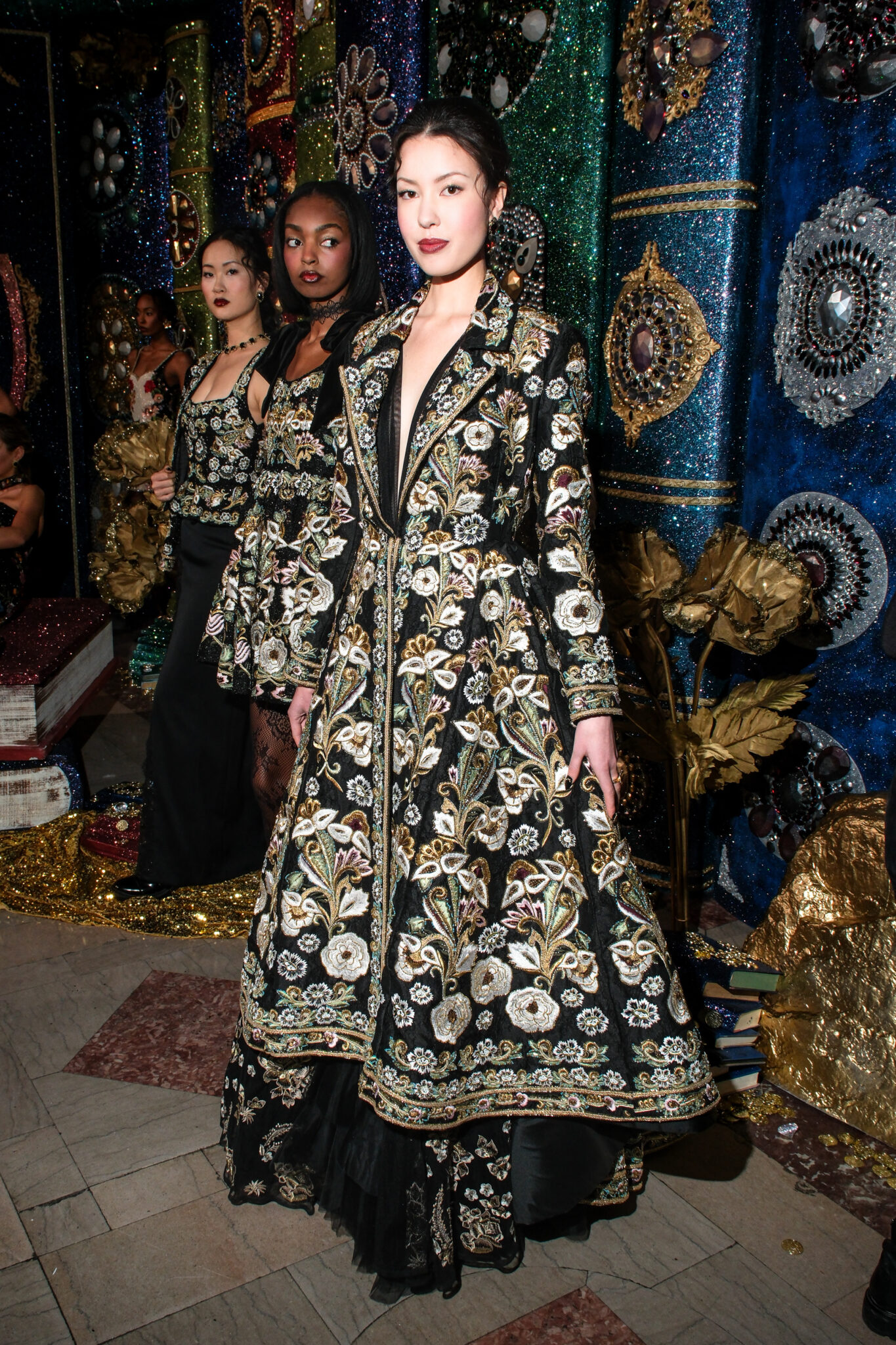 Crystal-encrusted gowns that shimmered like heirlooms. Brocade capes and corsetry that nod to Rococo romance but are styled for the woman who runs the room today.