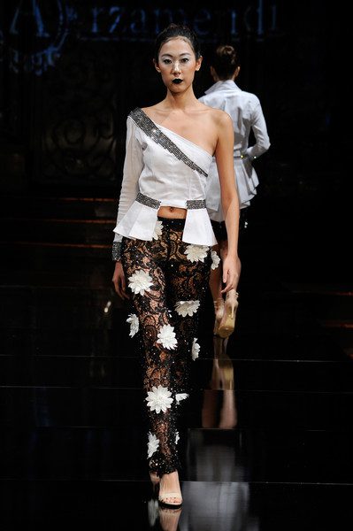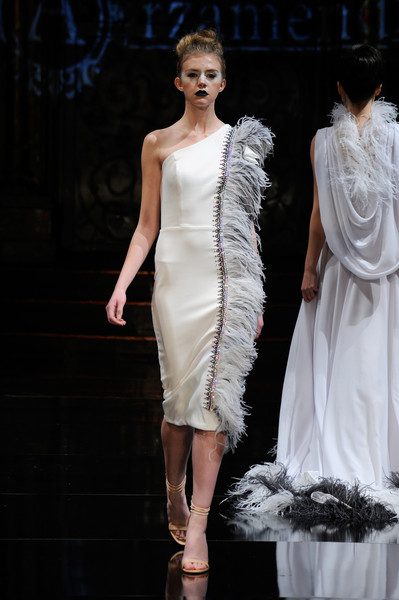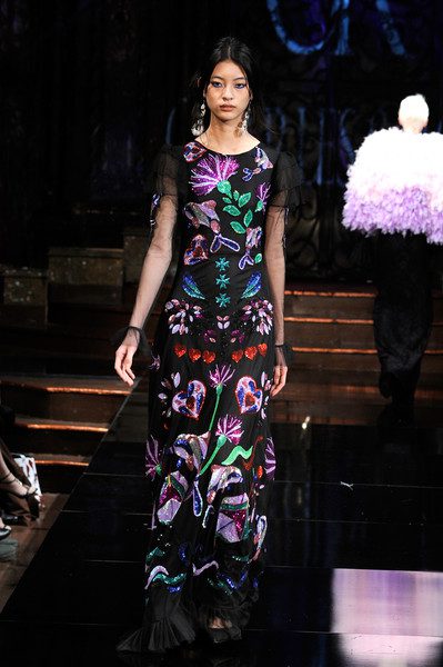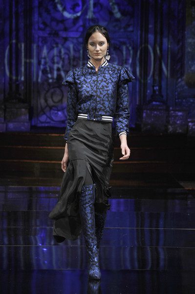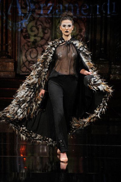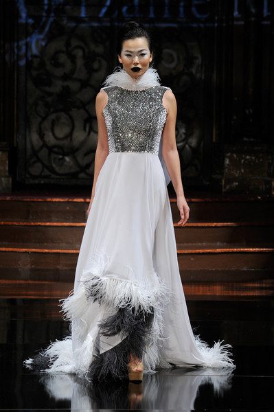 The first collection embodied a romanticized expressionism and incorporated the use of textures, heavy embroidery, sheer and flowing silhouettes, feather accents and fur. It tells a color story that transitioned from cool hues into deeper shades. Tailored separates are shown alongside evening silhouettes.
