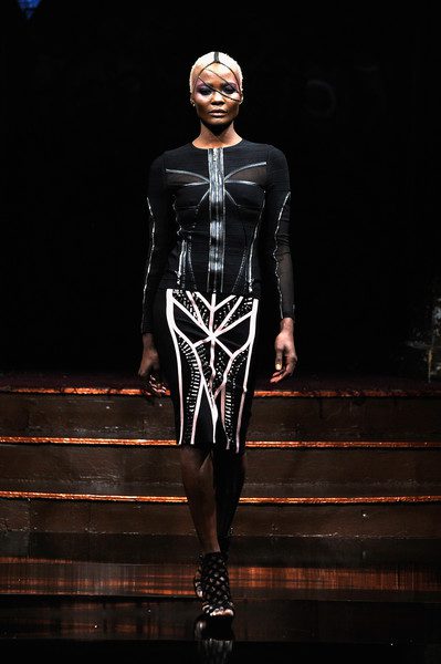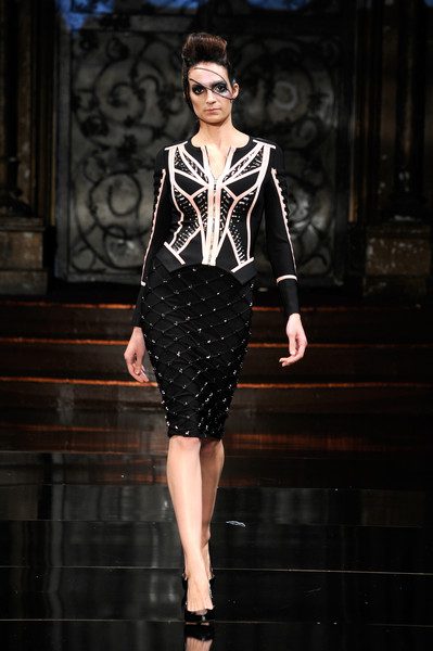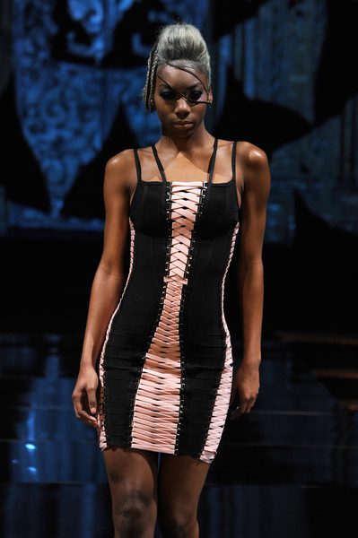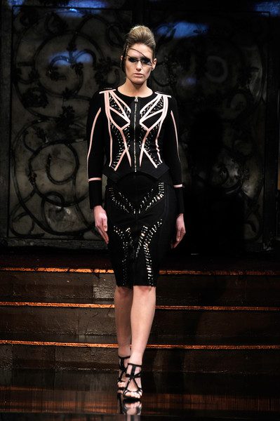 The second collection focused a lot on bodycon but taken to a whole other level. If you are not familiar of what bodycon is, it is simply a one piece garment that hugs tightly and conforms to the body and typically comes in three lengths; knee, mid-thigh or upper thigh. The collection incorporated two piece structured separates as well as full dresses. Rosete achieved the “Multiform” effect with sharp and tailored embroidery and stuck to mainly a dark palette to show multiform of the accented designing