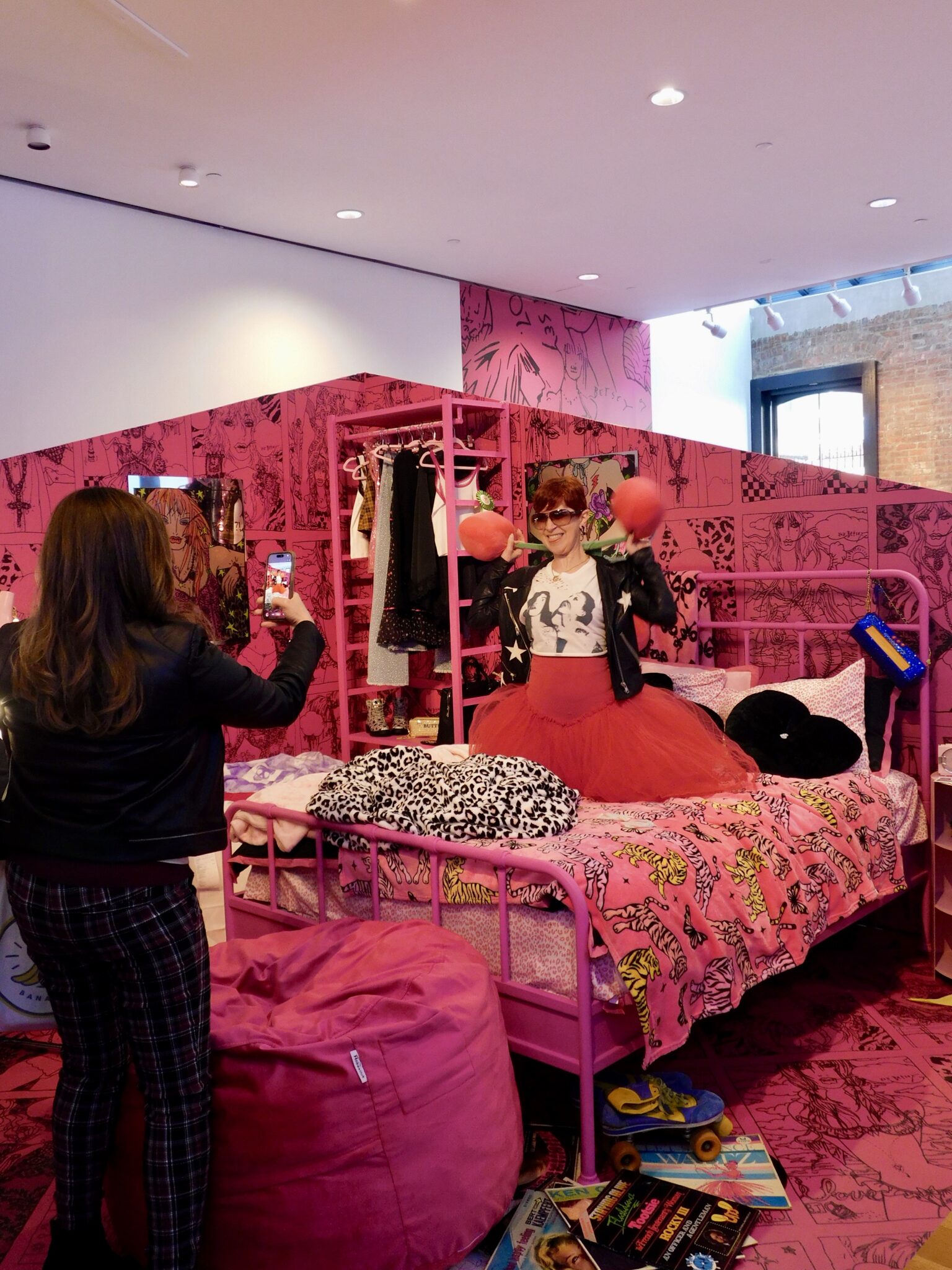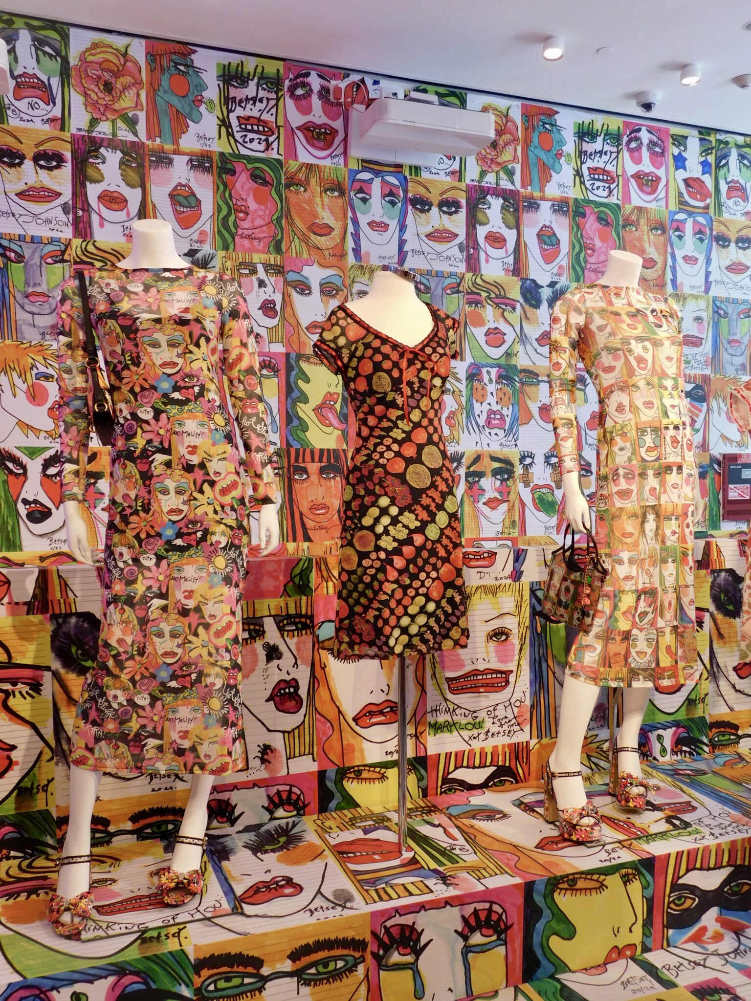 That connection went even deeper with the display of one-of-a-kind original artworks by Betsey herself. Placed throughout the space, the artwork added a more personal, almost behind-the-scenes feel to the experience. It reminded you that before the runway shows and iconic dresses, there was always an artist at work. Seeing that side of Betsey Johnson made the entire pop-up feel more intimate, even in such a high-energy environment.