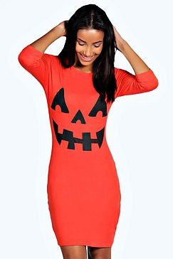 - Hayley Pumpkin Print Halloween Bodycon Dress