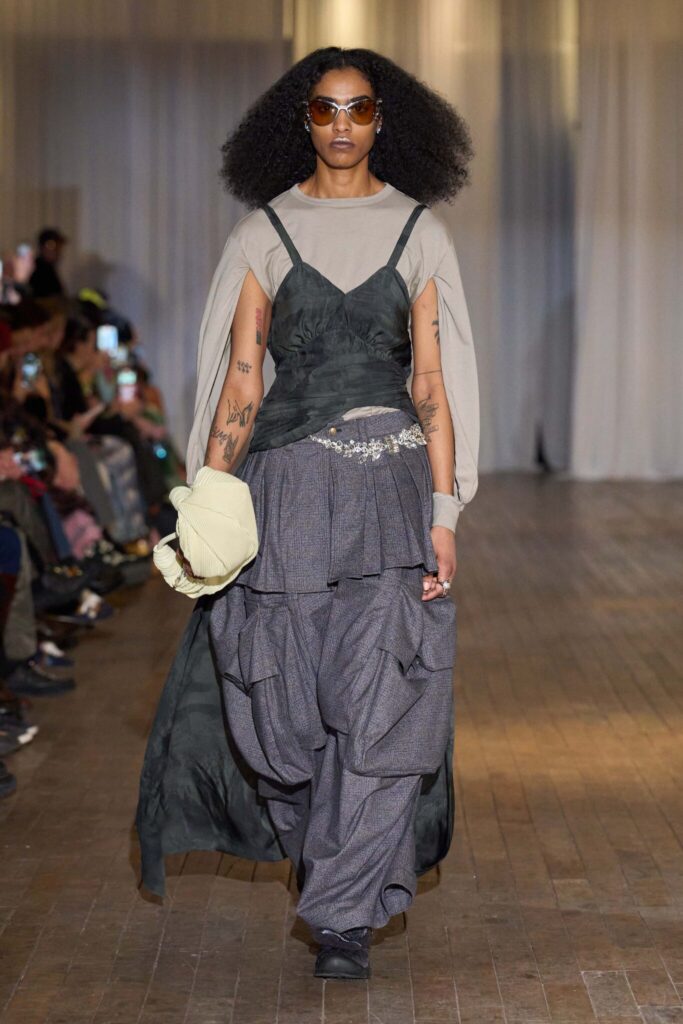 Collina Strada’s evolving narrative feels inseparable from the brand’s history itself. Showing each season on the official New York Fashion Week schedule, Collina Strada has continuously reimagined the runway as something more than a presentation of clothes. Under Hillary Taymour’s direction, the shows have become a space for reflection, conversation, and at times, confrontation. Instead of separating fashion from the realities shaping the world, Collina Strada consistently leans into them, entwining social commentary into the visual language of the brand. Other seasons have explored themes ranging from environmental responsibility to identity, mental health, and systems of power, situating the runway as both a creative and cultural platform. This approach has become central to the brand’s identity. The collections under Taylor often respond to the emotional climate of the moment, capturing anxieties, contradictions, and shifting values. The World Is a Vampire continues this path, “We are in a crucial state of change right now,” Taymour has said, a sentiment that continues to echo through the brand’s evolving runway narratives.