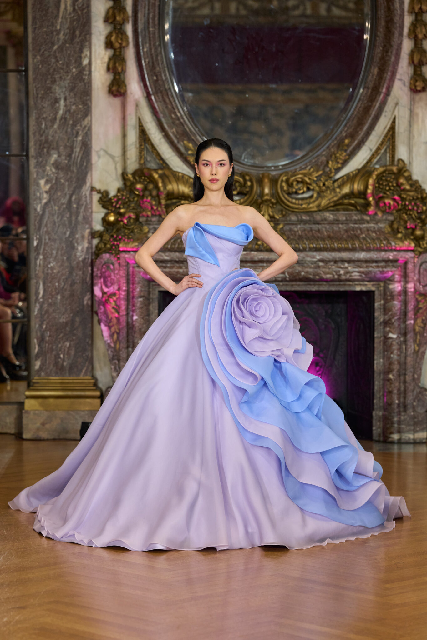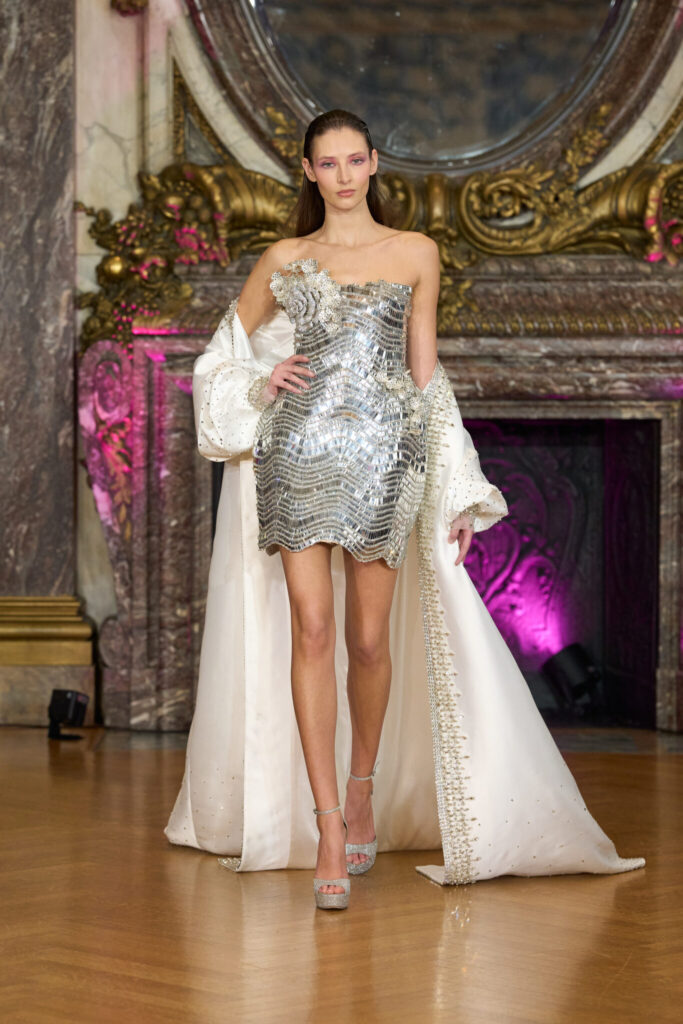 The collection unfolds as a study in contrast, where softness meets strength and whimsy effortlessly flirts with edge. Ethereal fabrics are balanced by sharp tailoring. Intricate embellishments are grounded in disciplined construction. Each silhouette feels deliberate, allowing fluidity and form to coexist in a way that commands attention without asking for it.