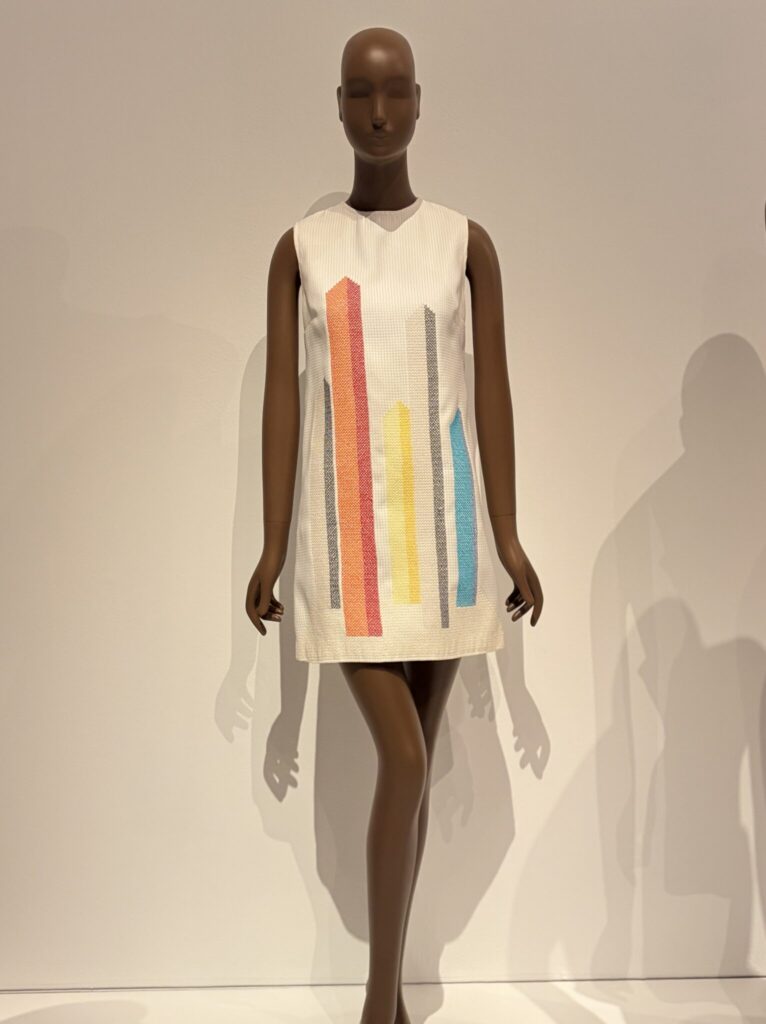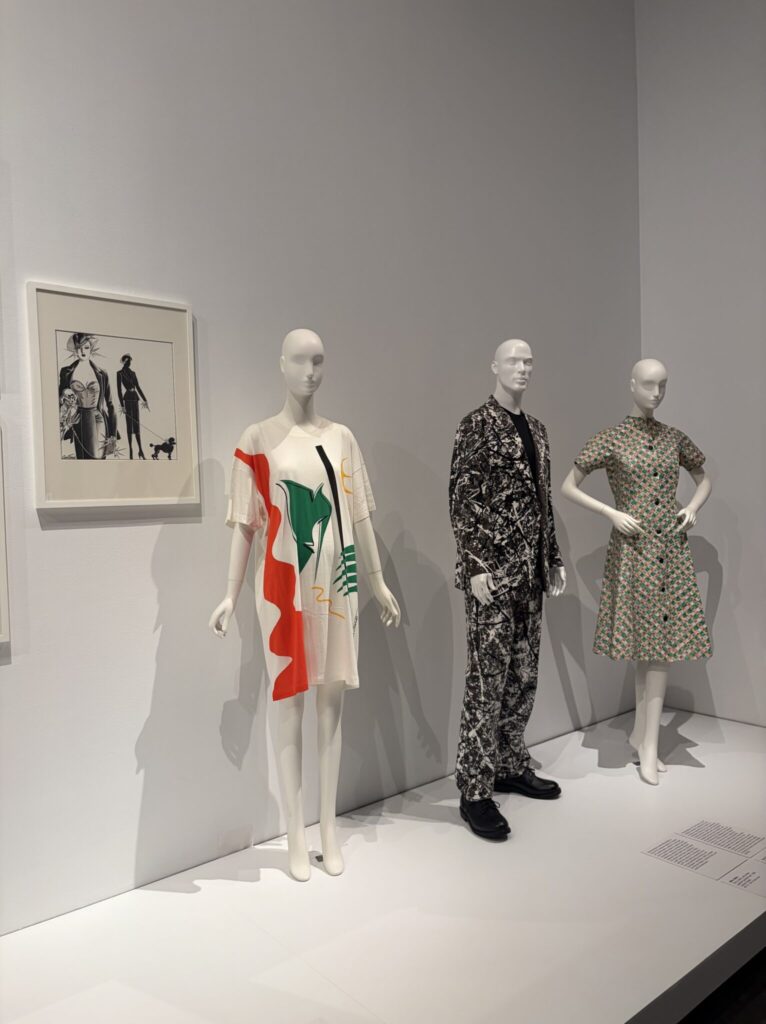The exhibition also traces how fine art has directly inspired fashion design. A standout example is Yves Saint Laurent’s famous dresses inspired by the geometric color blocks of Piet Mondrian. In Saint Laurent’s hands, Mondrian’s flat paintings were transformed into wearable sculpture, translating two-dimensional art into movement and form.