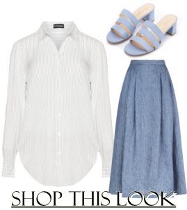 It’s Spring time and it is about time to do a little clean up in the wardrobe department. I selected this look because I am huge fan when it comes to light shades of blue. Pinstripes are a great way to add an assertive touch but you can soften it with a solid or “barely solid” piece. It looks just right to have a lighter color top and a darker bottom which is easy on the eyes and more appealing. Then top it off with monochrome sandals to match the Spring time. Not all of us have the budget to take on a hefty price tag, but you can always look for more affordable brands to achieve the same look. But if you can, go for it! So get the look!