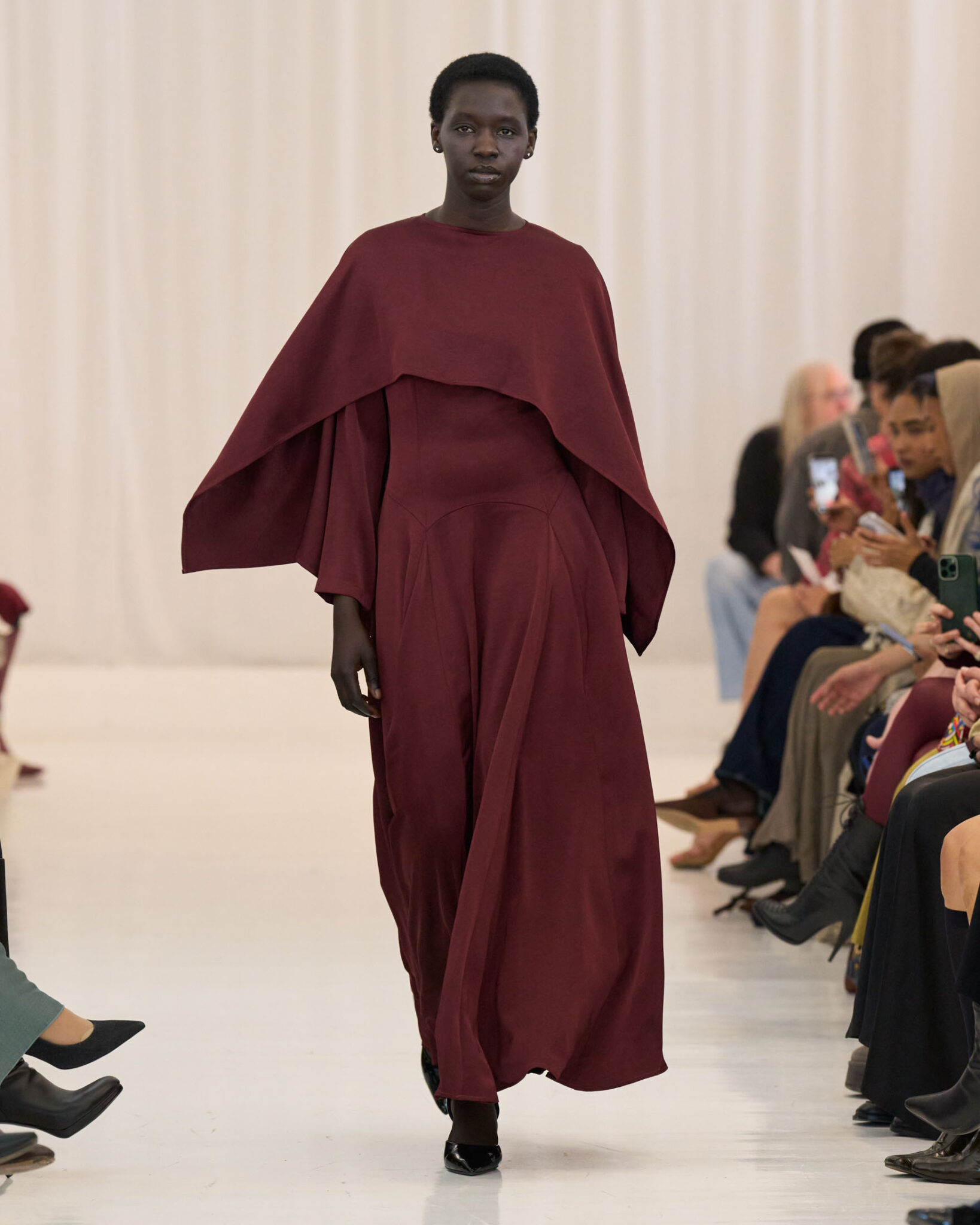 The beauty direction reinforced the message. Hair, led by Aubrey Loots for Wella Hair USA and GHD North America, emphasized polished texture and clean structure, complementing the silhouettes rather than competing with them. It felt cohesive. It felt intentional.