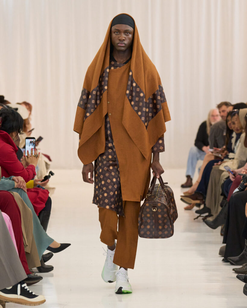 Islam Mohamed’s Fall/Winter 2026 collection centered on legacy, drawing from Islamic heritage while merging contemporary street culture. The tailoring was elongated. Outerwear carried weight. Layering was deliberate. Higher necklines and generous proportions created presence without theatrics.