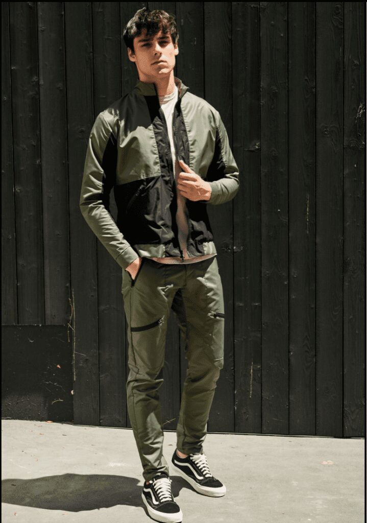 Streetwear and athletic wear was the inspiration for this menswear collection. It continues with the current cargo pants trend which have so far dominated 2019 and 2020. The button down flannels, jackets, and hoodies represent a laid back casual look with dark tones perfect for the fall/winter.