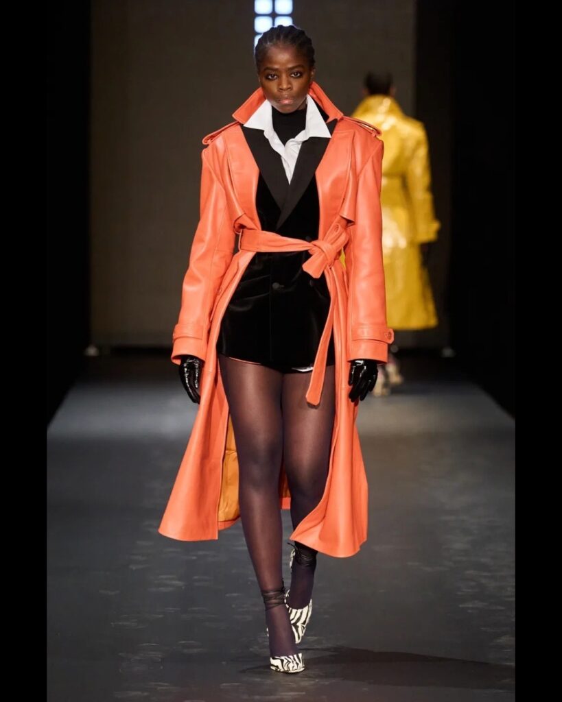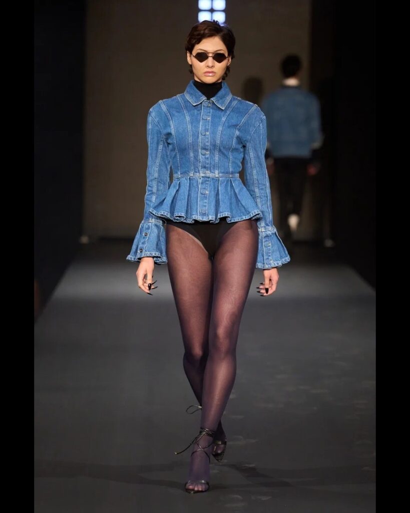Hunte takes the staples we think we know, trench coats, crisp button-ups, stone-washed denim, leather, tailored skirts, and reconstructs them with architectural discipline. Dramatic scale meets cropped lengths. Shoulders feel intentional. Silhouettes are sharpened. Tuxedo codes interrupt ready-to-wear pieces, reminding us that American sportswear can still hold formality, but on its own terms.
