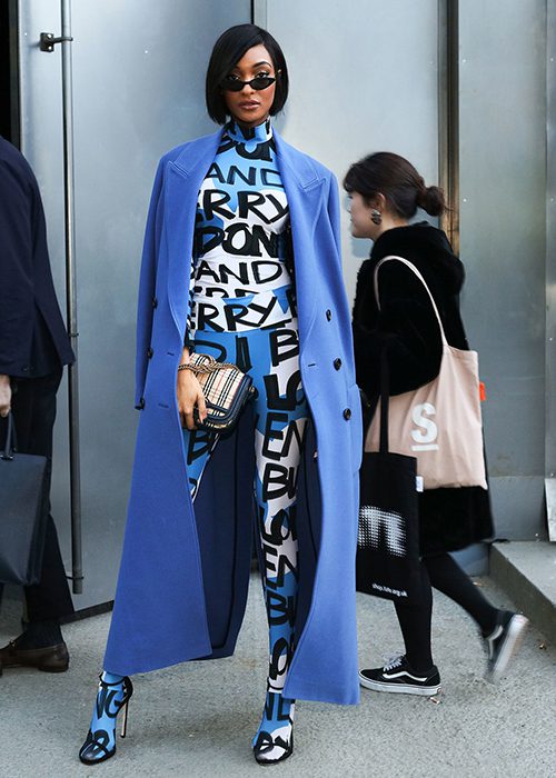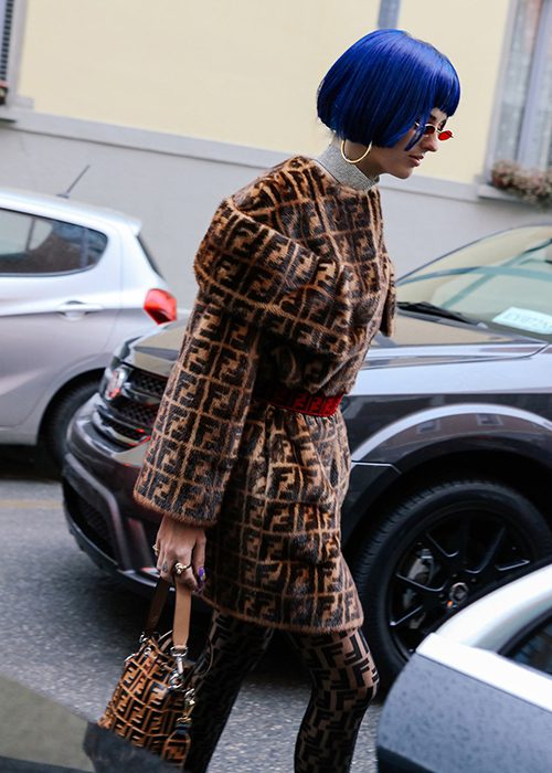 Another way to ease your way into the flashy trend is accessorizing. A simple hair piece, designer sash or a handbag can add your logo-centric trend to your look. You can also opt for a belt buckle or graphic caps/hats.
