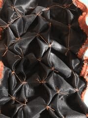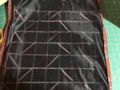 Today, smocking has evolved from just being an embroidery technique to that of way of manipulating fabric into interesting shapes.   At its simplest level, it entails making a grid of the desired number of boxes and then tying off points at each end of the box to achieve the desired effect.  Here’s the process: Step 1. Make a grid on the back or front of the fabric.  In this case, I have chosen to interface the fabric and drawn a grid on the back side.