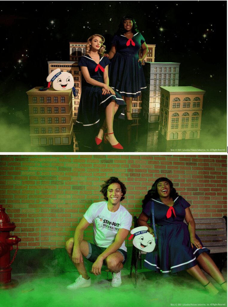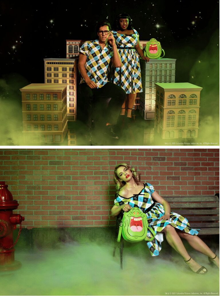 Launching today at 4pm PT/7pm ET at MichelinePitt.com, the Vixen by Micheline Pitt Ghostbusters Collection includes dresses, skirts, shirts, and bags featuring and inspired by the Ghostbusters rogues gallery of spectral baddies including the Stay Puft Marshmallow Man, Slimer, Gozer, Terror Dogs, and more, along with the ever-iconic “No Ghosts” Ghostbusters logo.