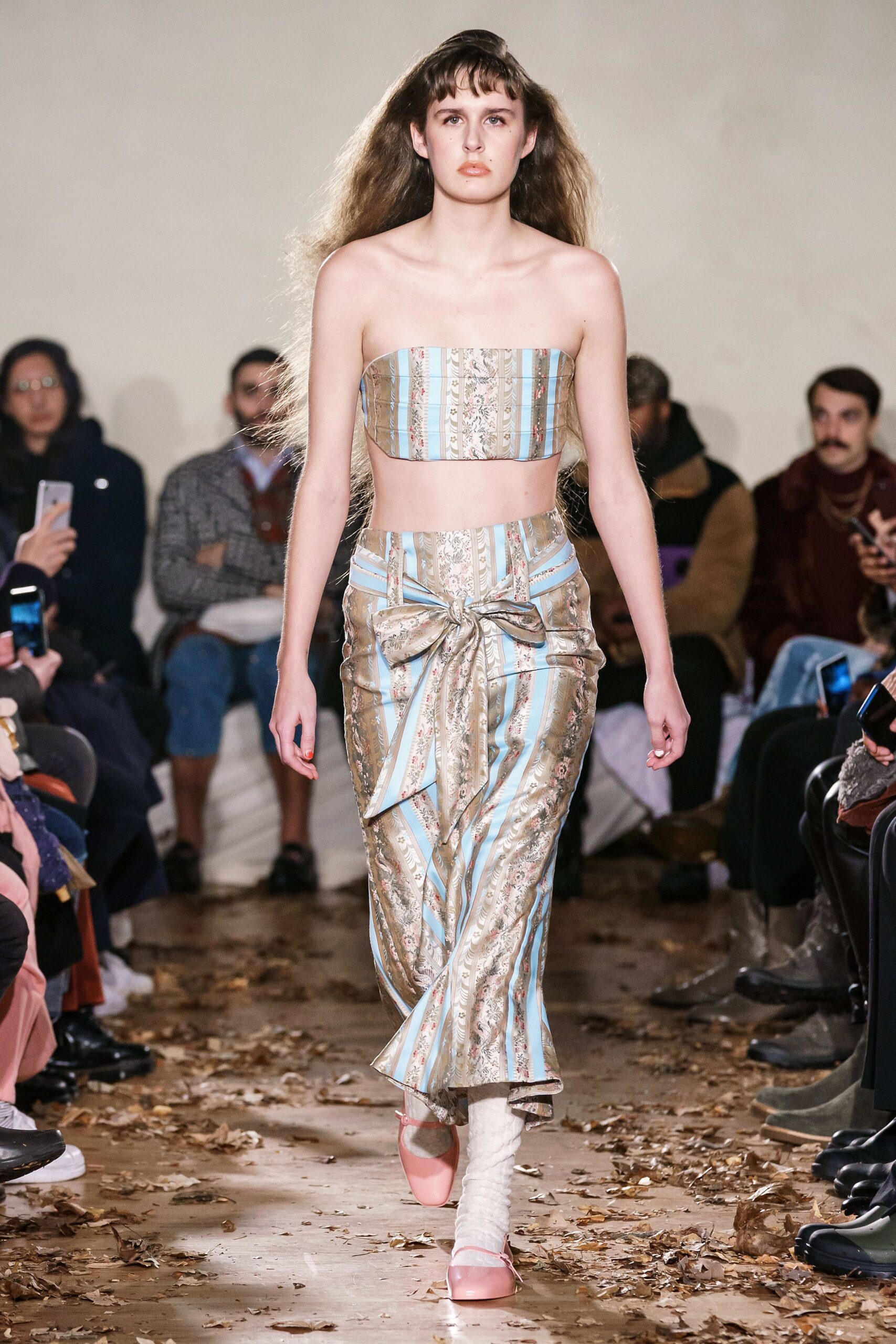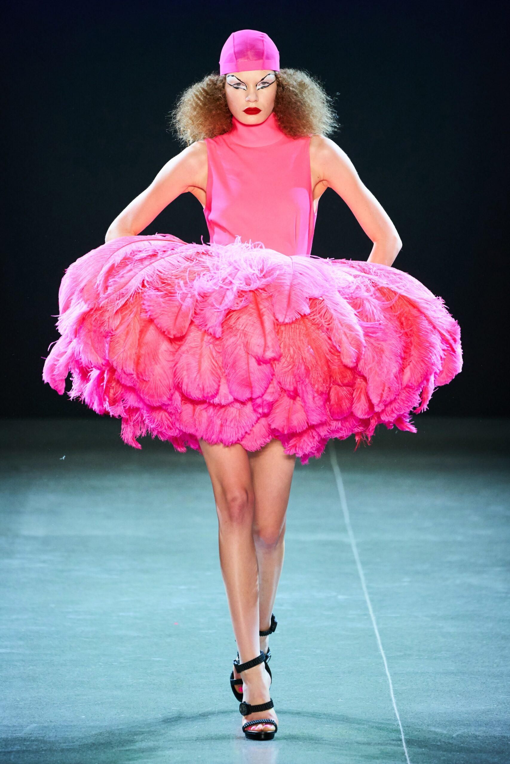 Christian Cowan showed off his collection through a satirical juxtaposition between the era of overly excessive sharing through social media and utmost luxurious, whimsy and swishy garments. With shapes being inspired by iconic Hollywood movie stars, garments included a mix of over-the-top embellishments including a hot pink, skin-tight cocktail dress, an estranged feathered skirt intro, a rhinestone trimmed draping piece, all being accented by classic-gone-crazy jewelry.