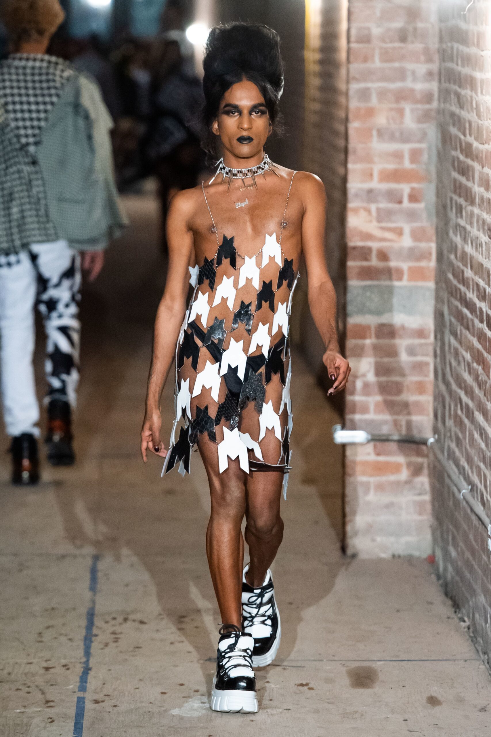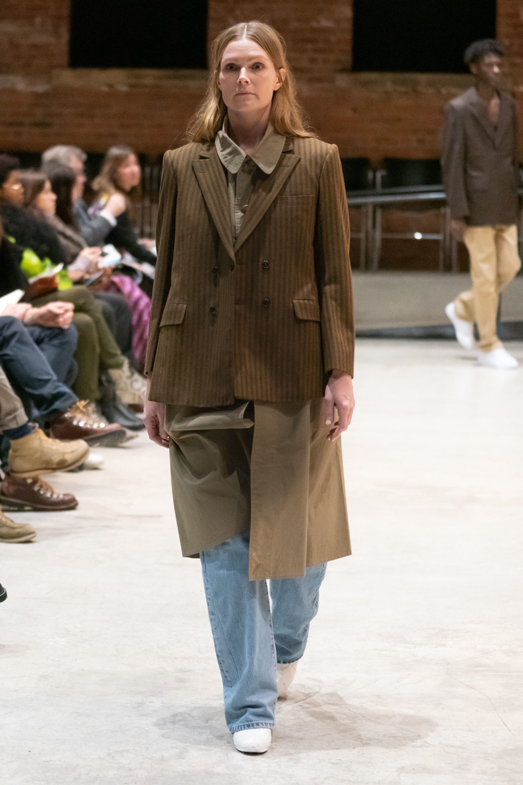 Shane Gabier and Christoper Peters, designers of Creatures of the Wind have, as of 2017, refocused the concept of their project driven brand, on that would not only introduce new trends fall 2019 New York Fashion Week, but would tap into social values, that of gender-fluidity in fashion in particular. The show was delivered at the Pratt Institute campus in Brooklyn where Gabier is a visiting professor in the fashion department. In the college’s auditorium, models appeared on the runway in a parade of styles that were produced via different avenues of production and distribution. The majority of pieces were one of a kind such as a 40s French Mouton coat amongst numerous vintage garments including tee shirt dresses and denim fringe ensembles. The designers’ creative endeavor indeed proved to push for sustainability and diversity without overlooking luxury beauty.