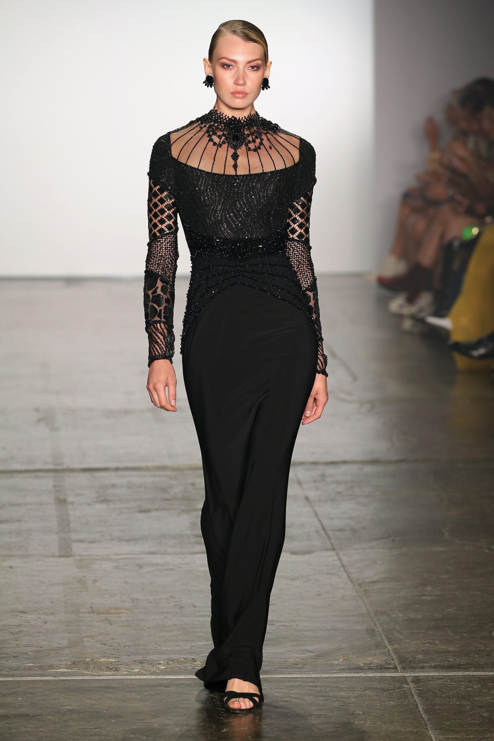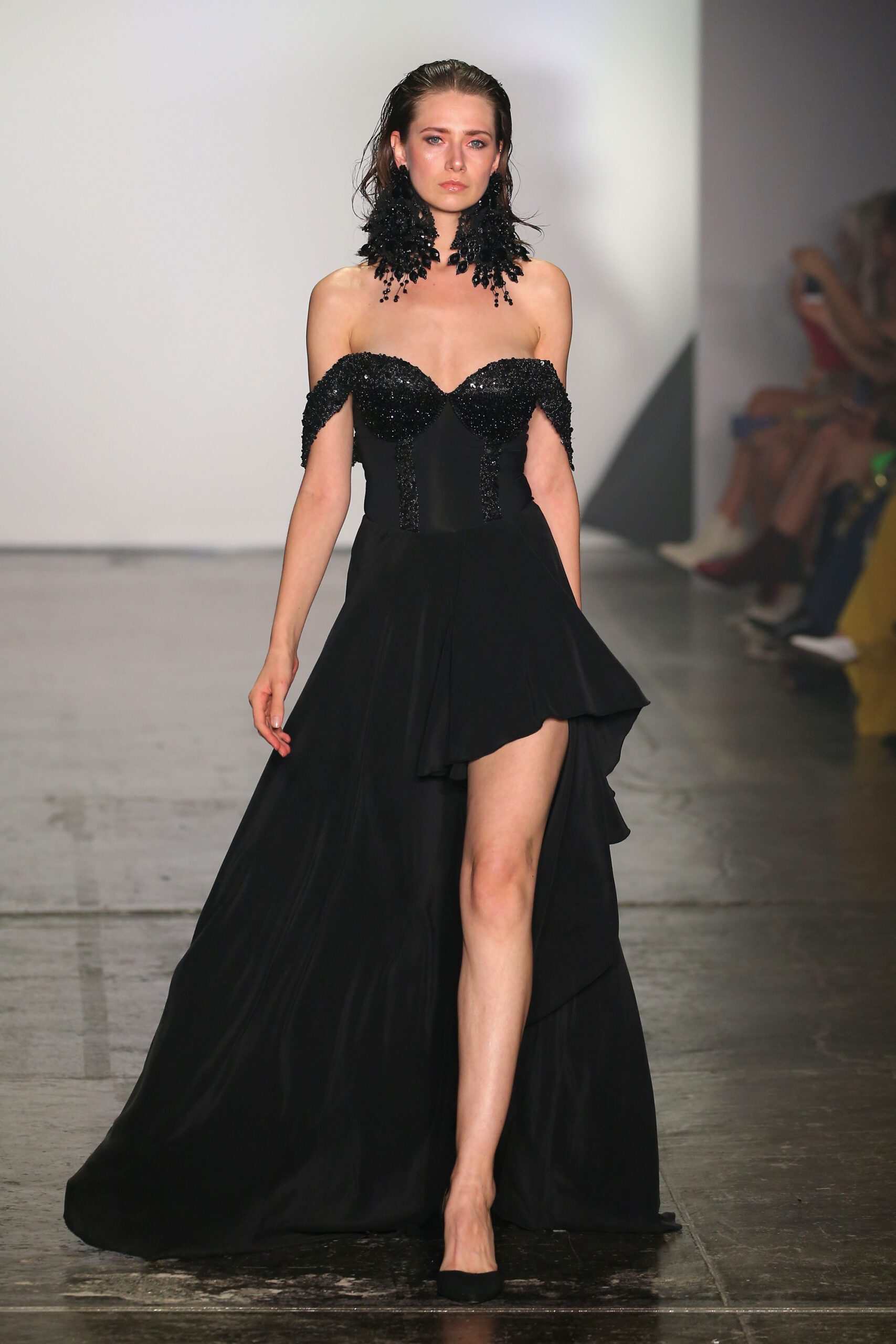 Each piece was stunning, full of daring cutouts, plunging necklines and sexy yet luxurious details Embellishments lined the waists of several gowns and statement bejeweled shoulder pads were a standout feature on select looks. The AFFAIR brand is inspired by women who are both sophisticated and powerful, yet very feminine and desirable; embodying a sense of confidence and attracting attention with their presence.