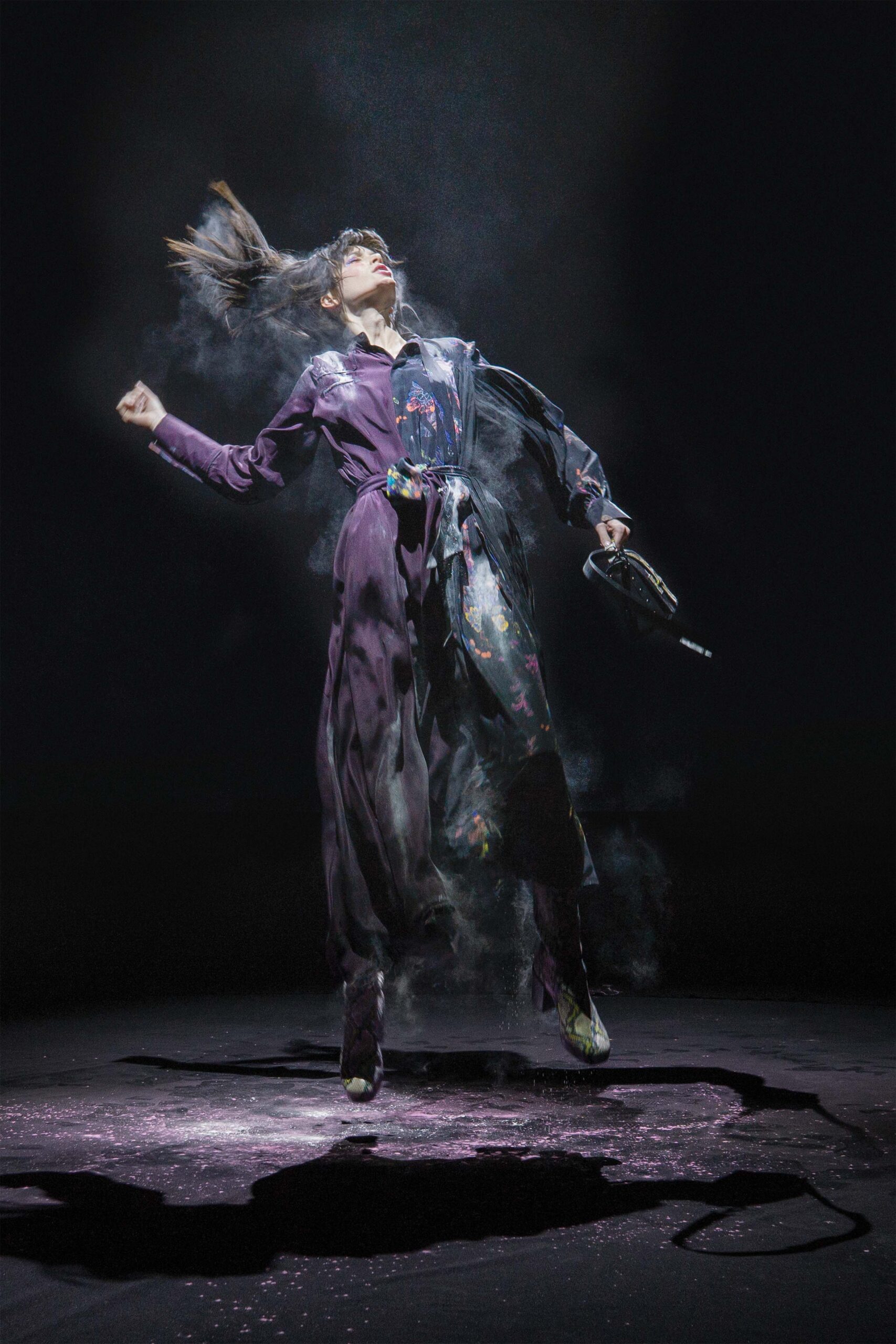 Together, avant-gardists, An Vandevorst and Filip Arickx created a countryside scene…without the countryside. The feminine, free spirited, strolling-amongst-the-wildflowers sort of gal was captured beautifully with relaxed trousers of soft brown, loose shirts of purples and reds, and chunky, printed heels. The collection was at the same time futuristic and subversive of convention with photographs being taken of models, in Sebring’s New York studio, being recorded leaping in the air in all directions, with the essence of movement and high tech speed being strikingly captured. With emotion and creativity lying at the heart of the designer’s vision this idea of the capturing of movement through film made for a poetic and romantic, but also an innovative show that stamped the style of the signature label.