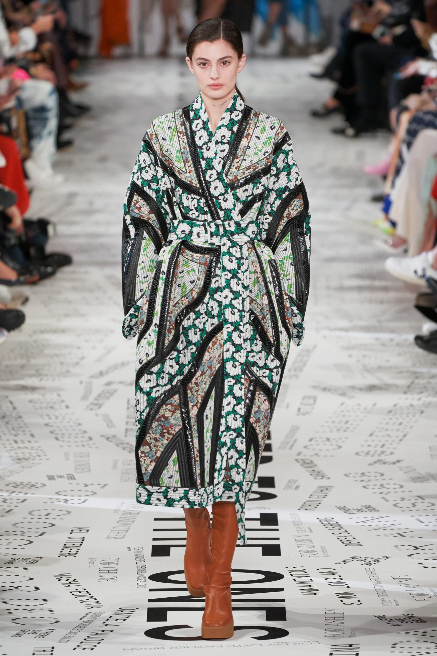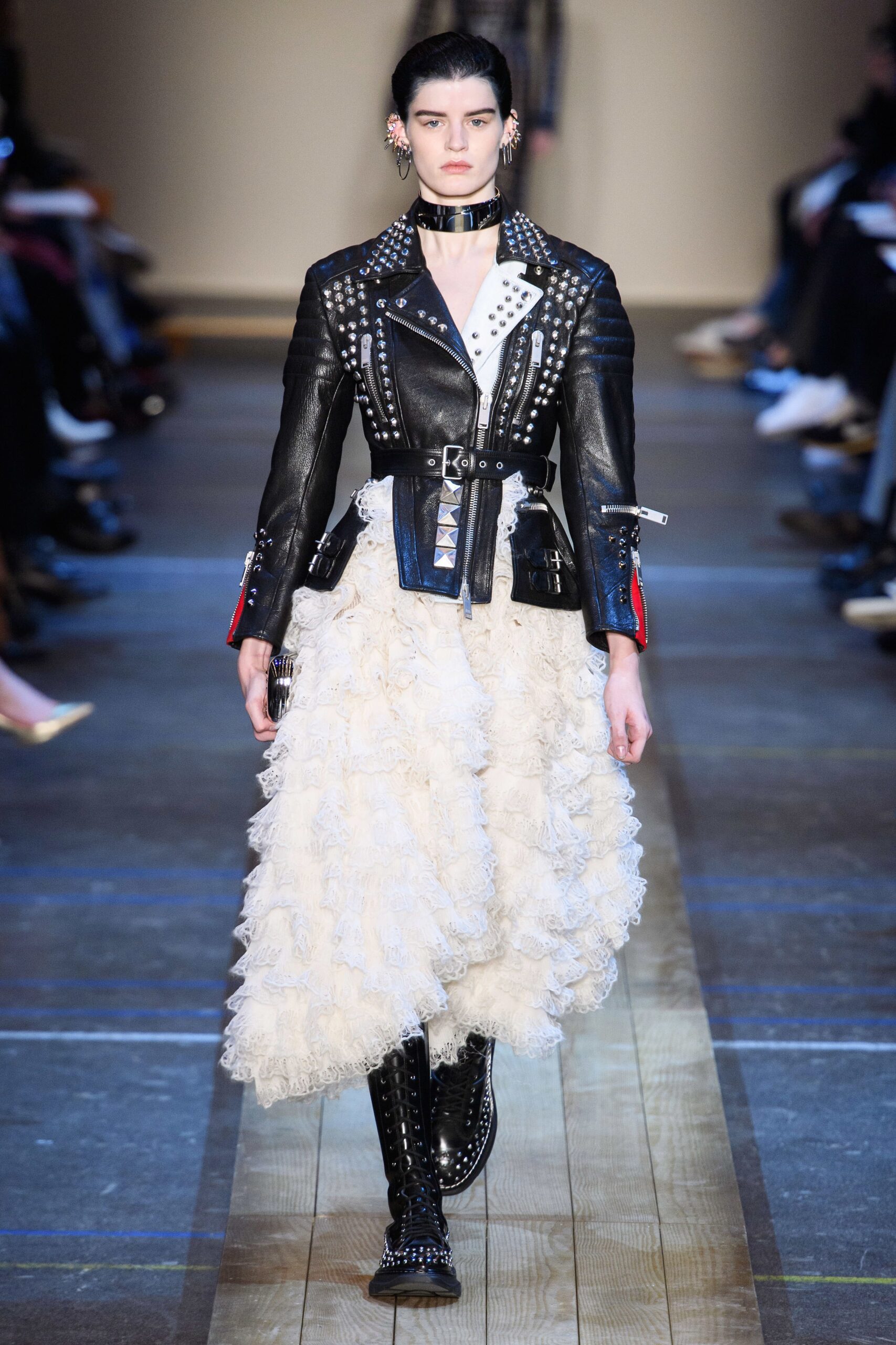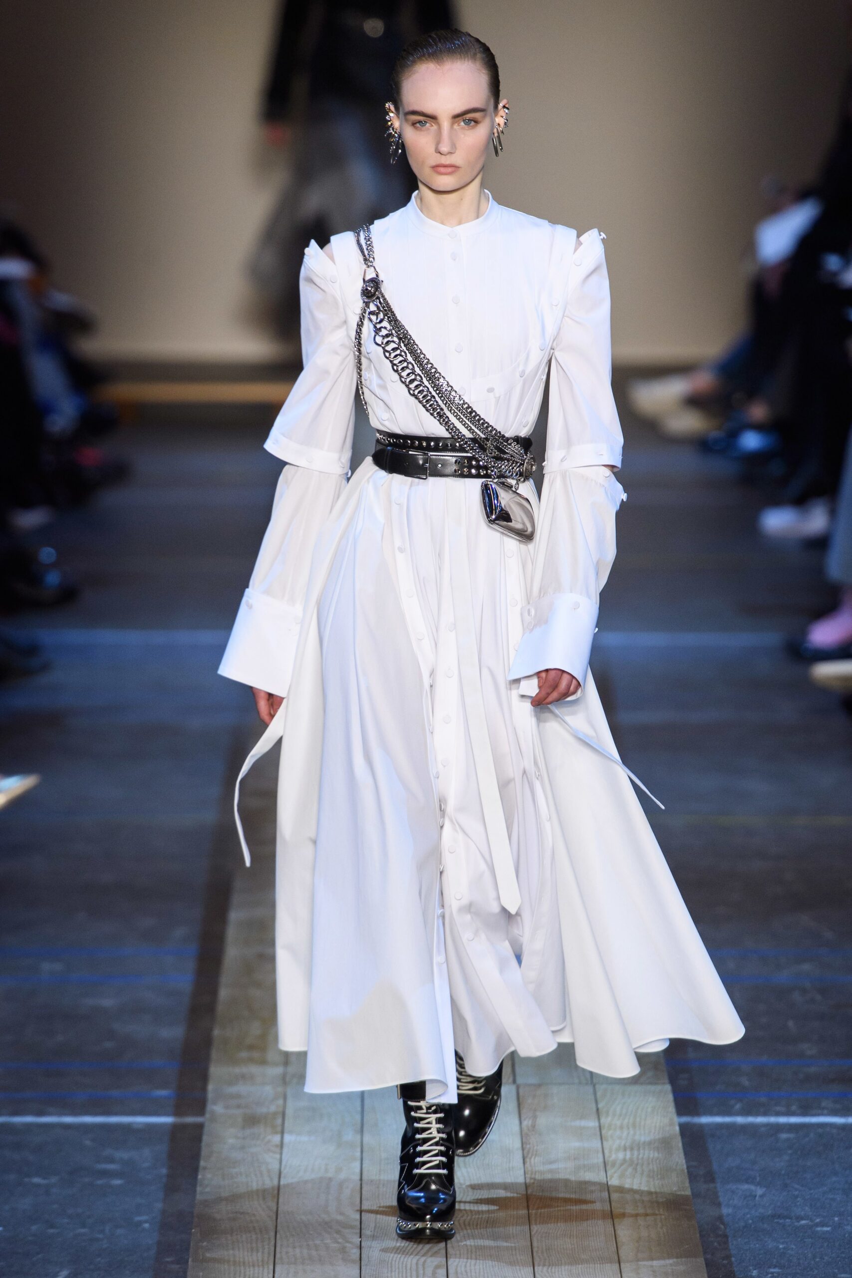 The Jardin des Plantes held Givenchy’s fantastical “Winter of Eden” – themed show. Designer Clare Waiter Keller was aspired to the concept of “When aristocracy started to meet street culture.” In context, this mean for a London club-like setting, off put by classically serene bourgeois garments. Many of the looks seemed to want to snd cross a message of female empowerment: sculpted silhouettes, belted waists, vibrant pantsuits, crystal-encrusted cuffs. The collection was an assortment of stiff tailoring, puffer jackets, turtlenecks of silk, and classic satin lapels. The evening looks were sent in a couture-like style with neutral blues, blacks and grays with shapely sleeves and flowing hems, not to mention the reiteration of the classic little black dress.