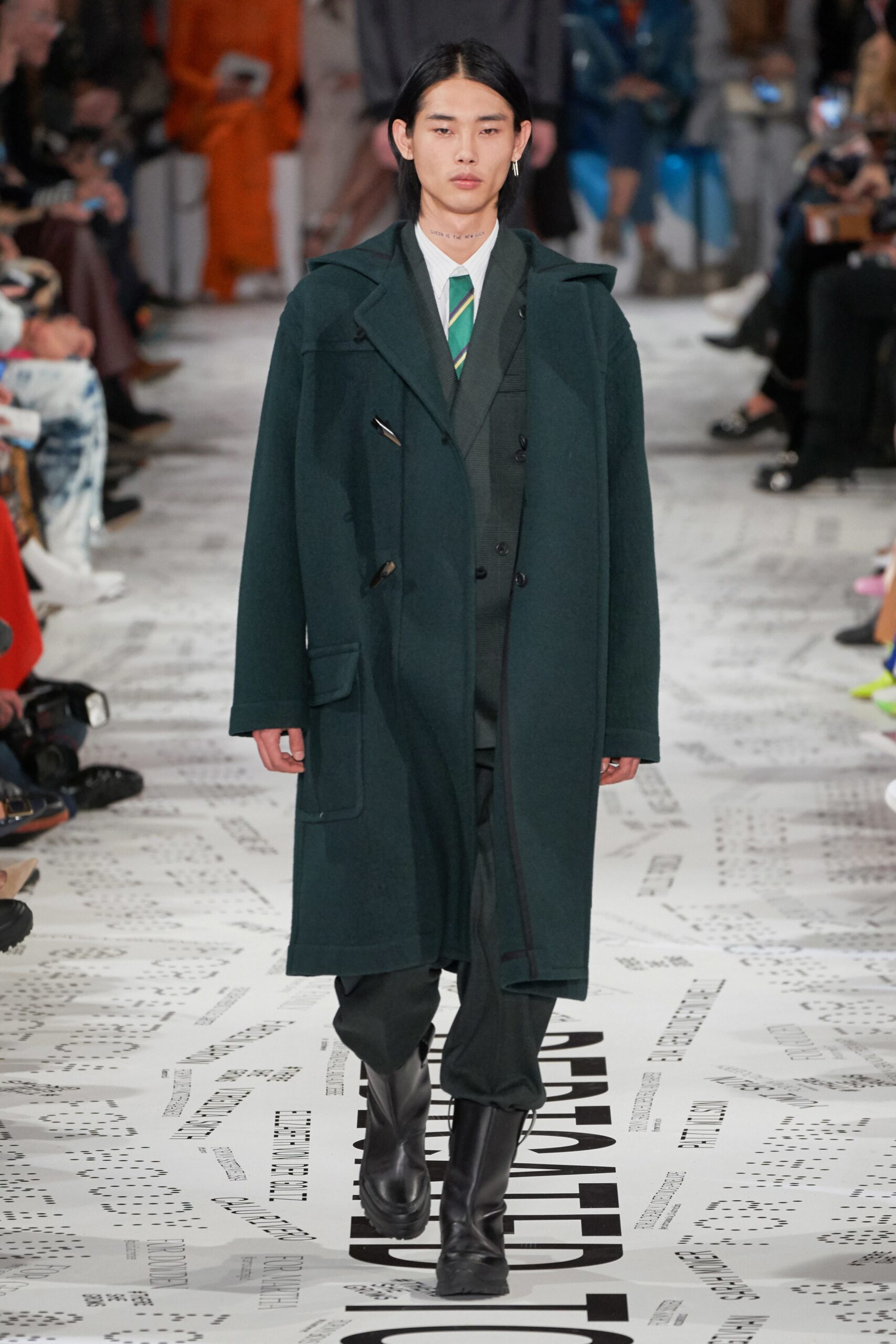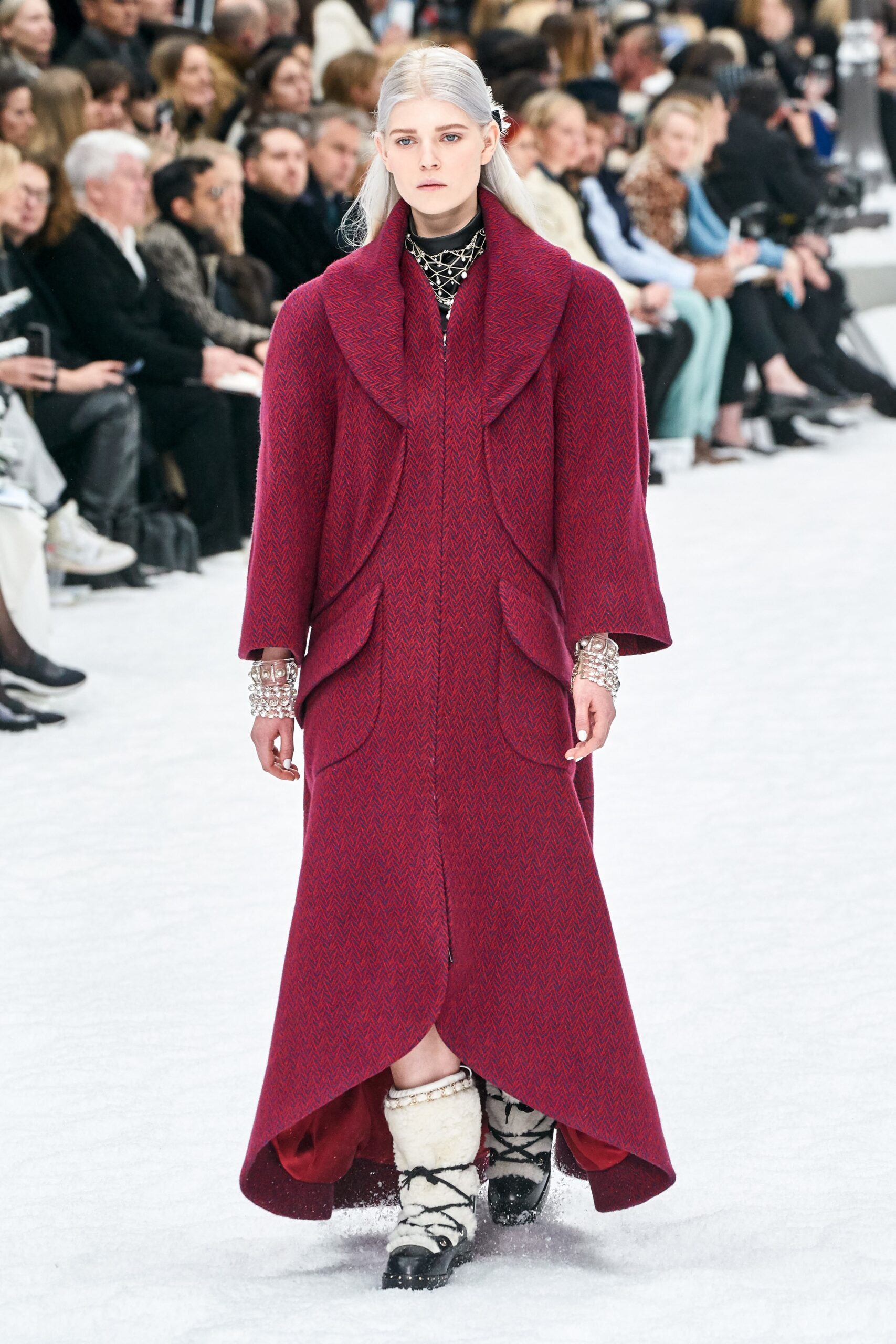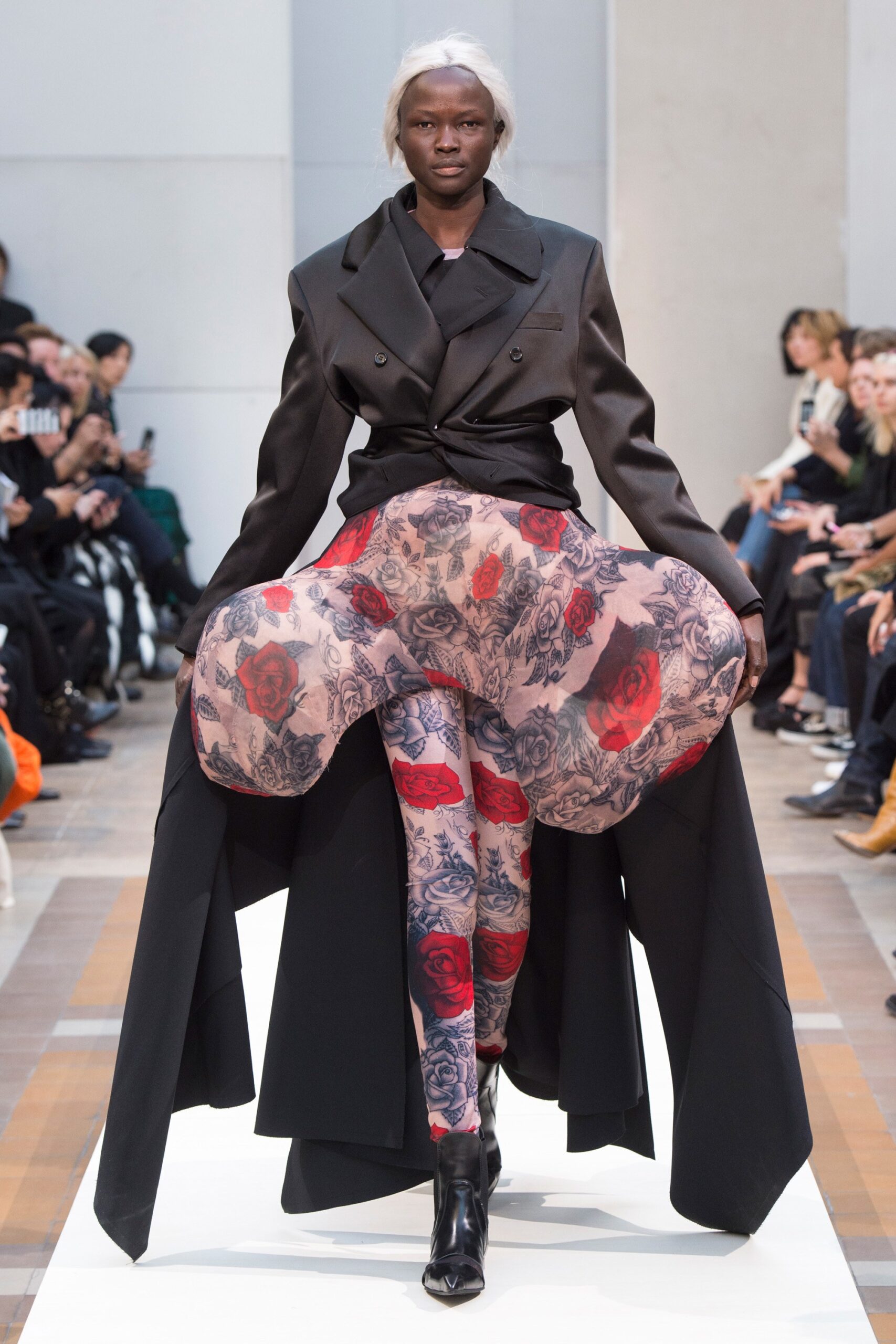 The Jardin des Plantes held Givenchy’s fantastical “Winter of Eden” – themed show. Designer Clare Waiter Keller was aspired to the concept of “When aristocracy started to meet street culture.” In context, this mean for a London club-like setting, off put by classically serene bourgeois garments. Many of the looks seemed to want to snd cross a message of female empowerment: sculpted silhouettes, belted waists, vibrant pantsuits, crystal-encrusted cuffs. The collection was an assortment of stiff tailoring, puffer jackets, turtlenecks of silk, and classic satin lapels. The evening looks were sent in a couture-like style with neutral blues, blacks and grays with shapely sleeves and flowing hems, not to mention the reiteration of the classic little black dress.