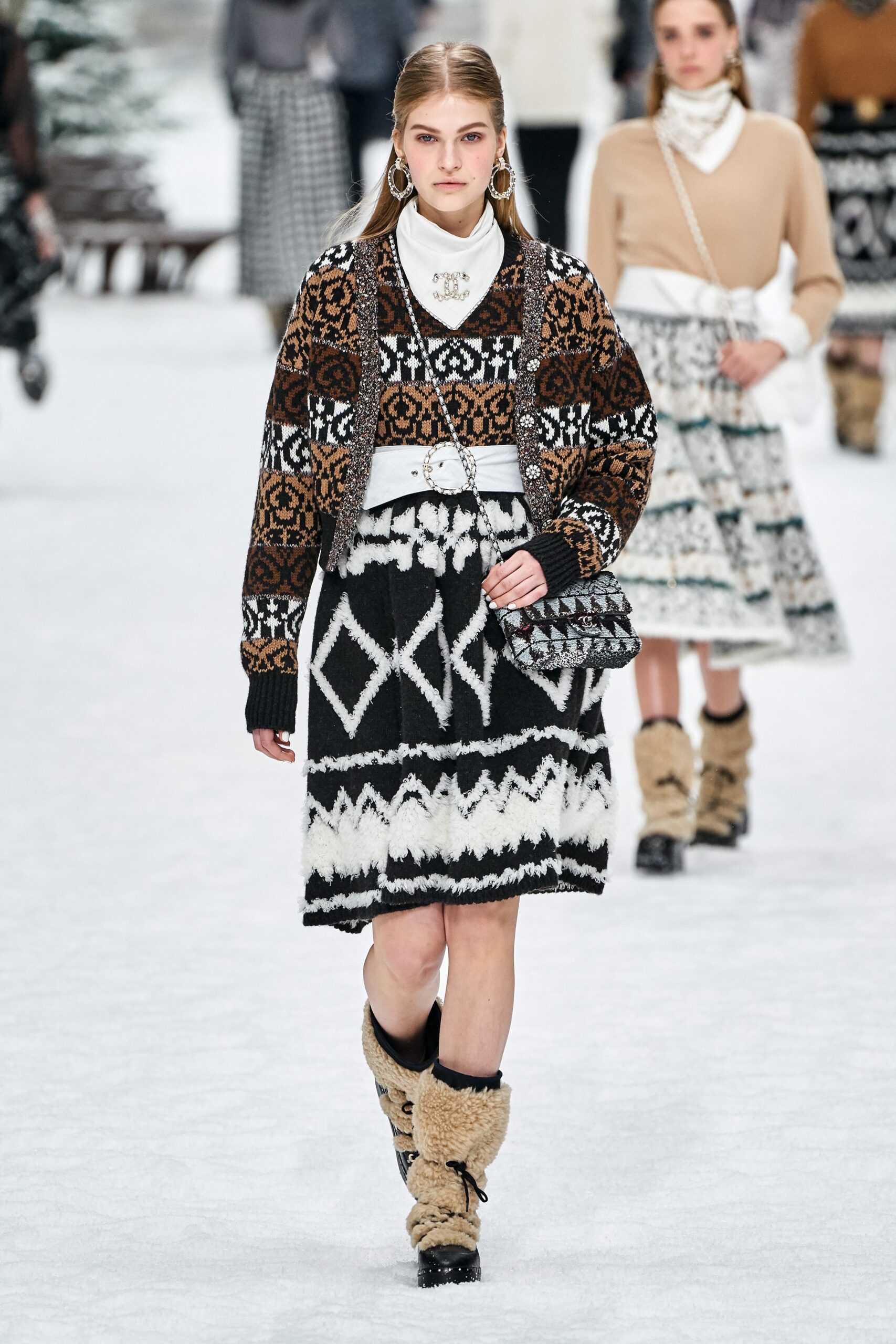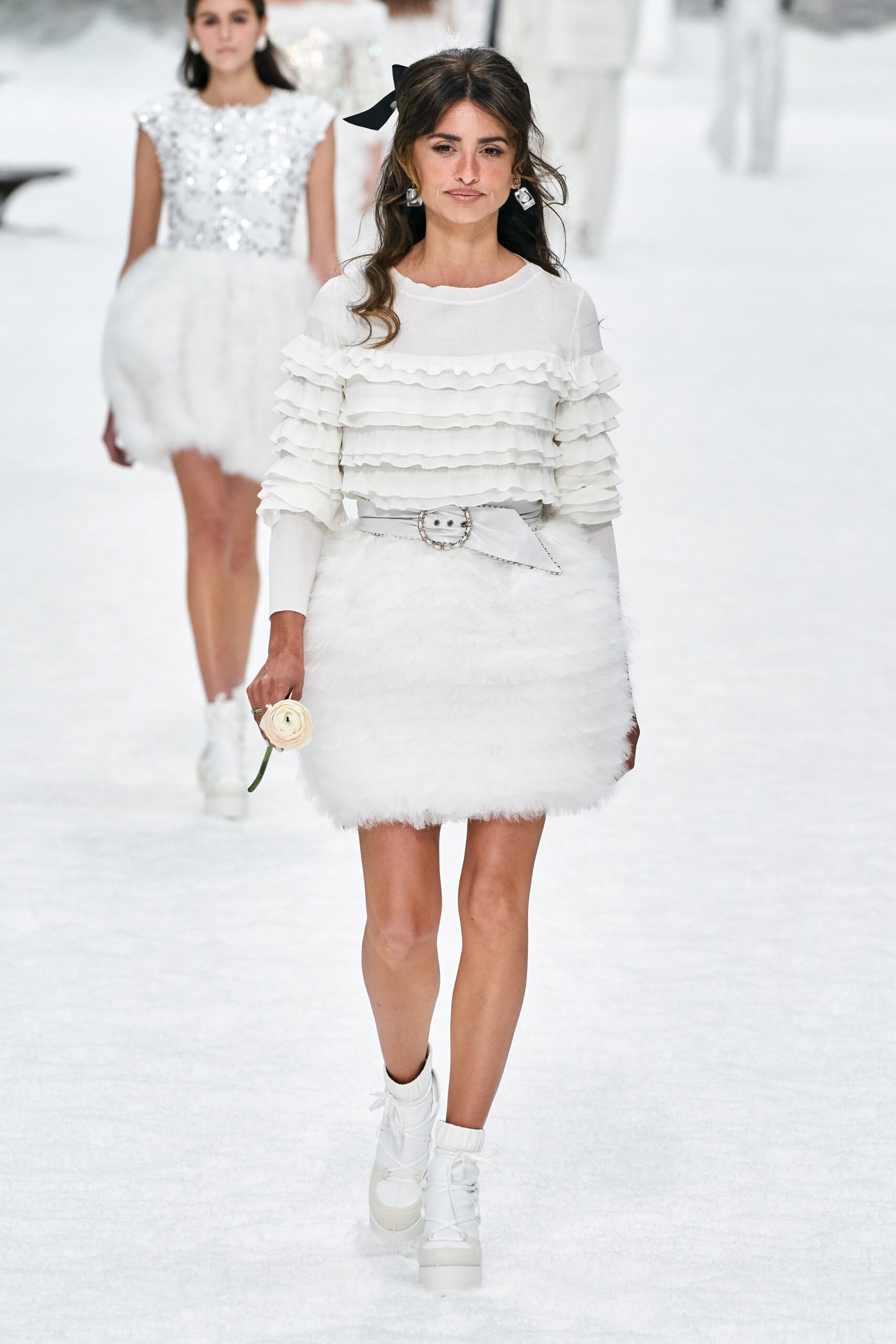 Where could we begin if not with the late Karl Lagerfeld’s last runway show, marking the end of the creative genius’s 35-year-reign at the Chanel house. The lineup for the show took place in a a charming structure of snow-swept rooftops made up in a Swiss village. Some of Lagerfeld’s muses throughout the years, including a stunning finale from singer and actress, Penelope Cruz appeared from the “Chalet Gardenia” in winter wonderland whites. Opening this serene, if not mesmerizing show was a moment of silence, in honor of the passing of Lagerfeld, which included an audio recording of the designer himself. In this tone of respect and serenity, the show began with Cara Delevingne introducing Lagerfeld’s signature tweeds, followed by an array of whites, camellias and checkered patterns.