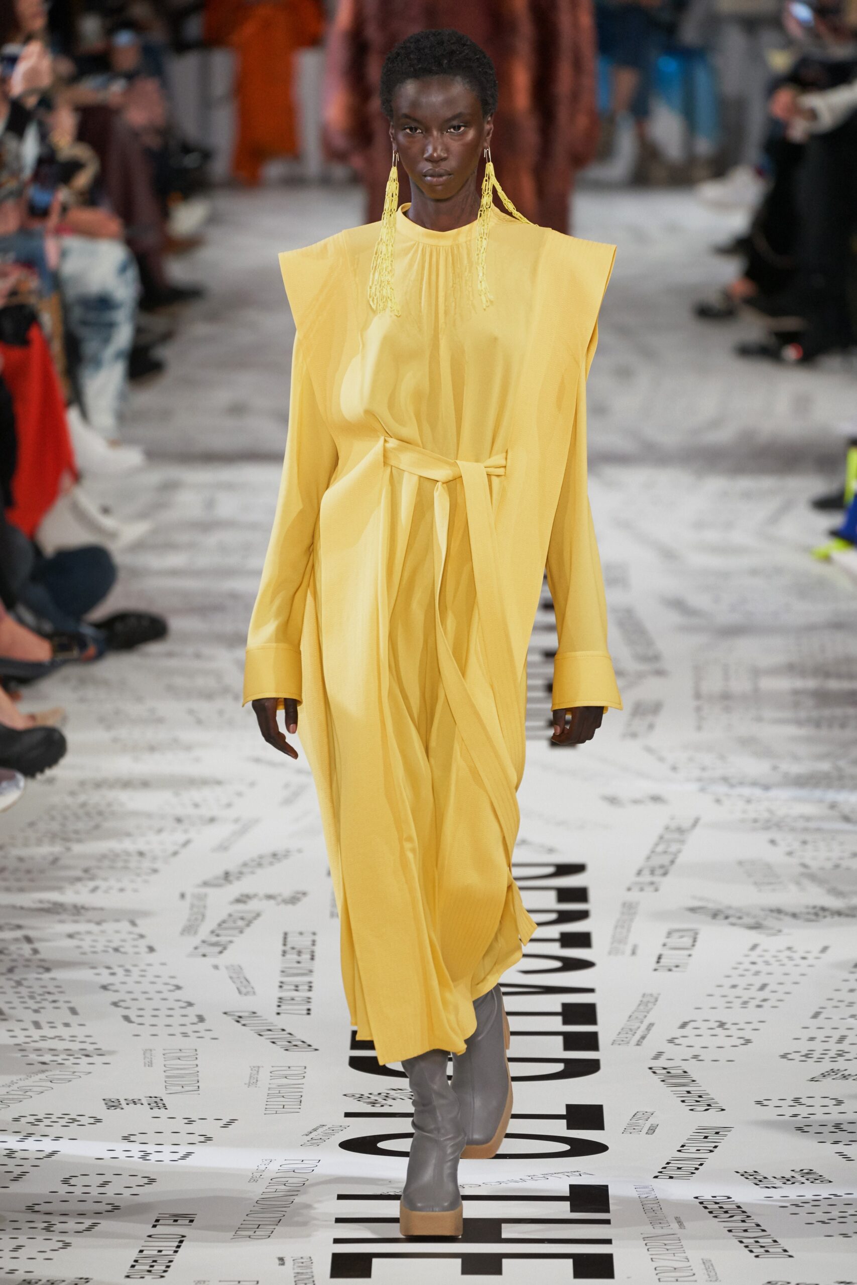 Stimulating empowerment for women has been a driving force behind Stella McCartney’s collections the past few seasons. Her designs speak to politics, animals and the environment, and gender issues all around, demonstrating her lifelong passion to bring luxury fashion and societal debates together. The designer’s sustainability ethics illustrates her confidence and speaks to her knowledge of the matters. On the runway this season she highlighted her ethos by utilizing upcycled garments such as a T-Shirt dresses and even reused fabric remnants from her previous collections. Her collection was not bold nor did it make a statement, but rather claimed elegance, and high quality with coats of fake fur and leather, as well as a palette of soft pinks and yellows, juxtaposed with neutrals – blacks, browns, and grays.