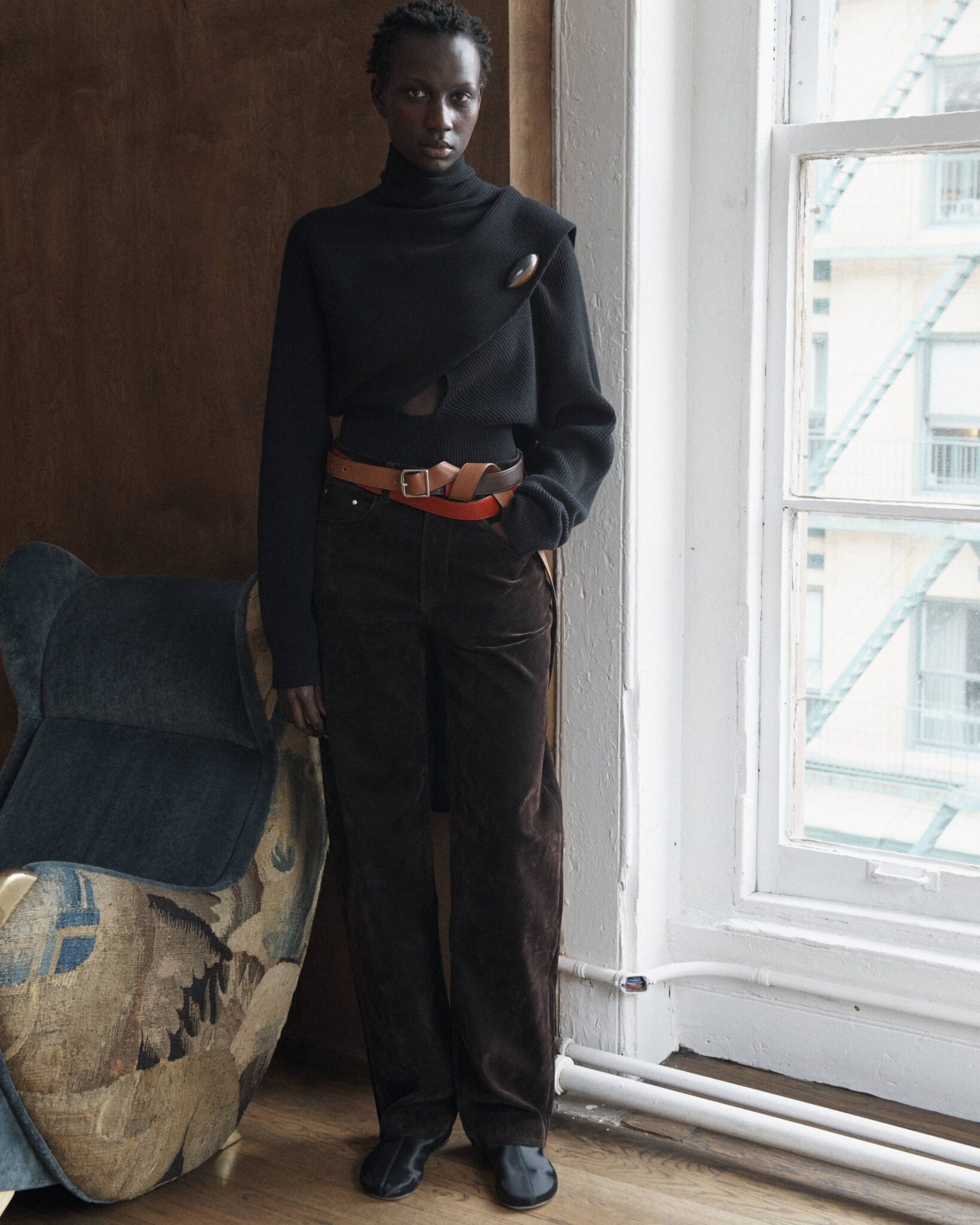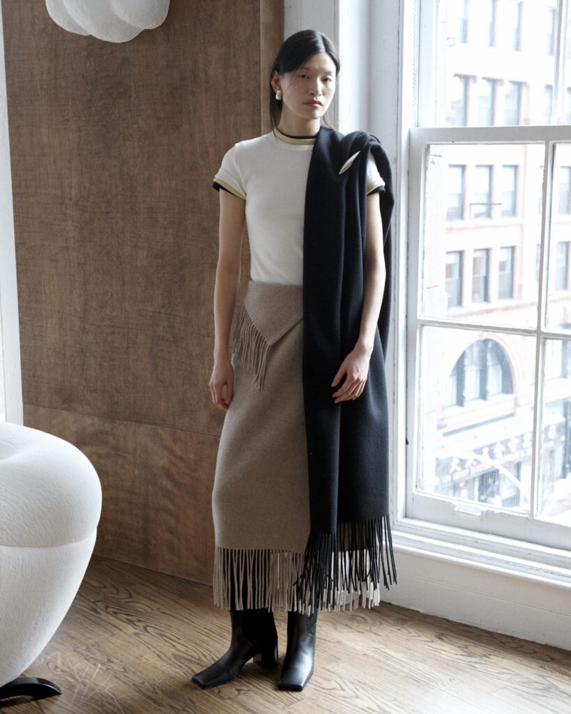 The 13 look presentation took place inside the Pierre Augustin Rose gallery for the brands first ever time at New York Fashion Week. The collection combines the brand’s signature approach — translating the spirit of denim into winter materials, where each garment feels both essential and unexpectedly refined.