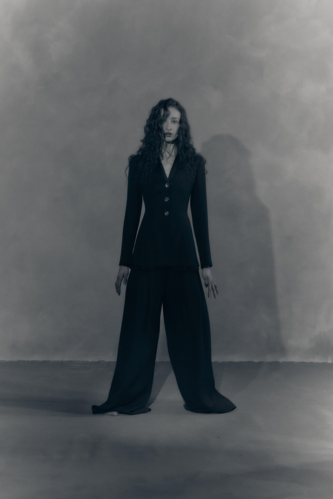 The AW26 Pre-Collection draws inspiration from the evocative work of George Platt Lynes, whose dramatic photographic compositions inform the collection’s mood and silhouette. McDowell reinterprets Lynes’ intensity through refined tailoring, sculptural dresses, and statement gowns that feel both timeless and modern.