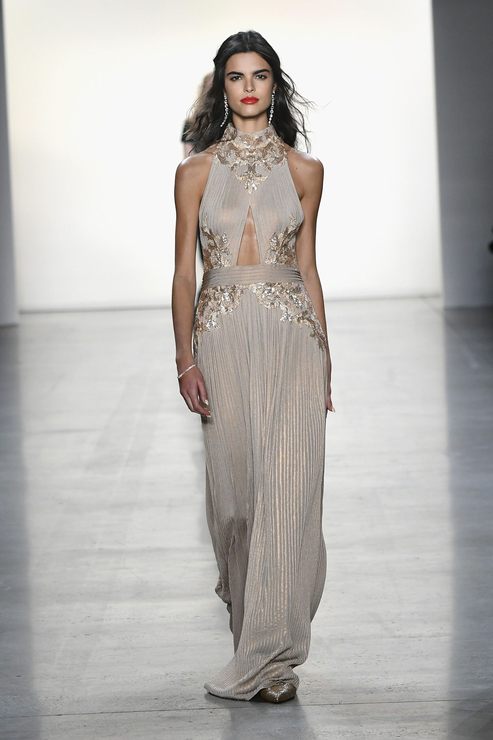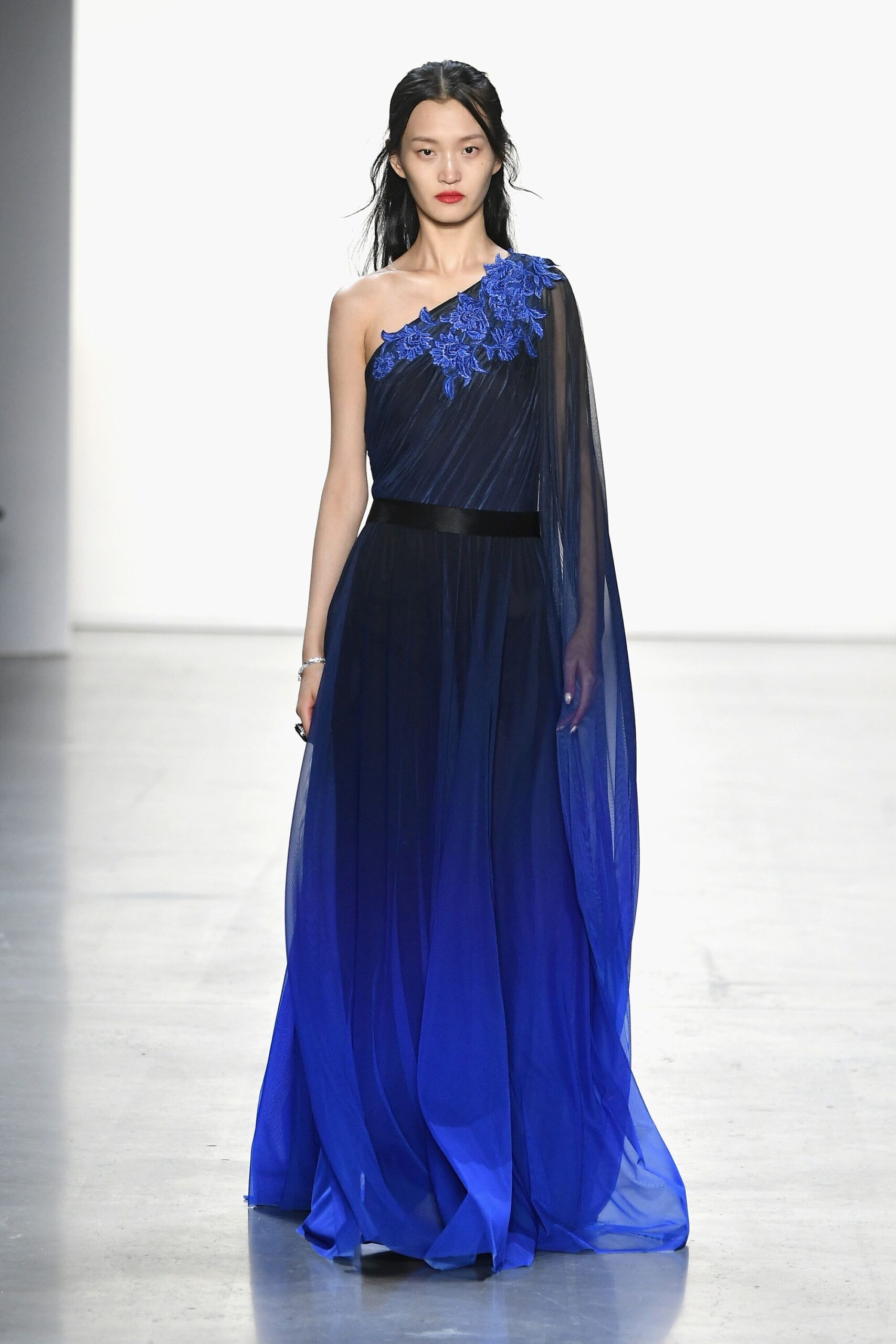 For this season’s collection American fashion designer Tadashi Shoji took a soft, rather romantic approach to his namesake label of evening wear. The collection reflective shear continuity of the contemporary Japanese artist’s vision of blurring couture with everyday wear to develop a new category of evening wear that could be accessible to all women. This season, like the ones preceding, Shoji enchanted observers with his collection of rich masterpieces, native to his classic signiture style, marked by sparkling gowns and sophisticated silhouettes.
