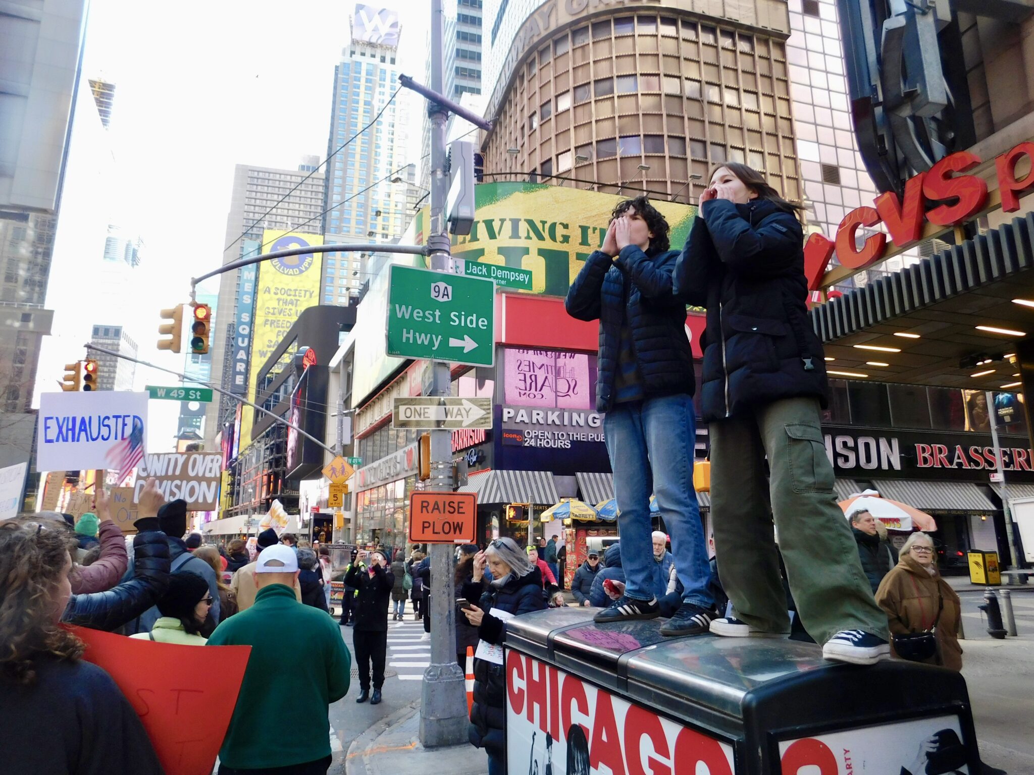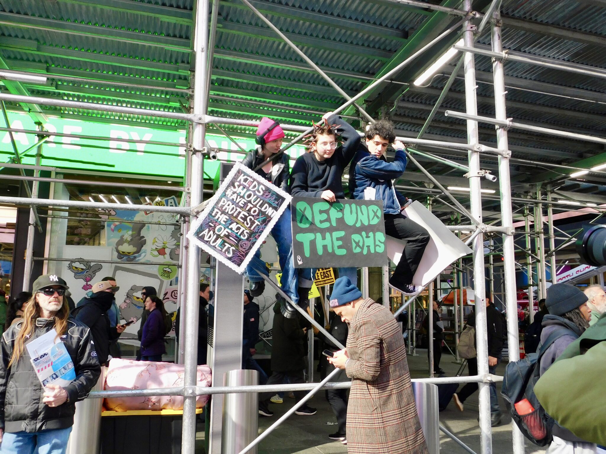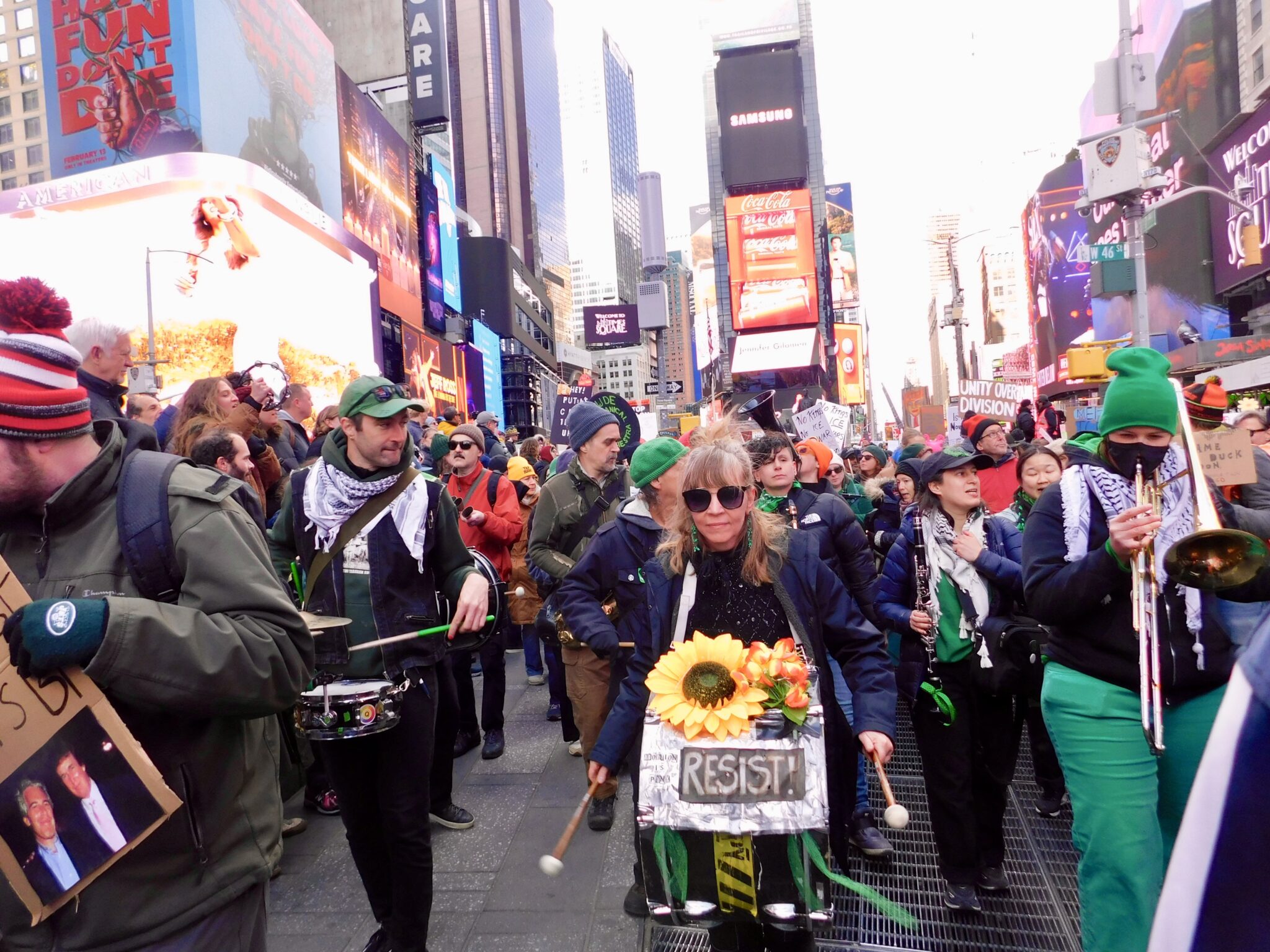 On Saturday, March 28, 2026, New York City became a hub for civic demonstration as part of the nationwide No Kings Day of protest, with more than 3,000 marches and rallies scheduled across the United States. The protest in Manhattan drew thousands of participants to Columbus Circle and Central Park South before they began marching at 2 p.m., weaving down Seventh Avenue and Broadway, through Times Square, and ending at 34th Street.