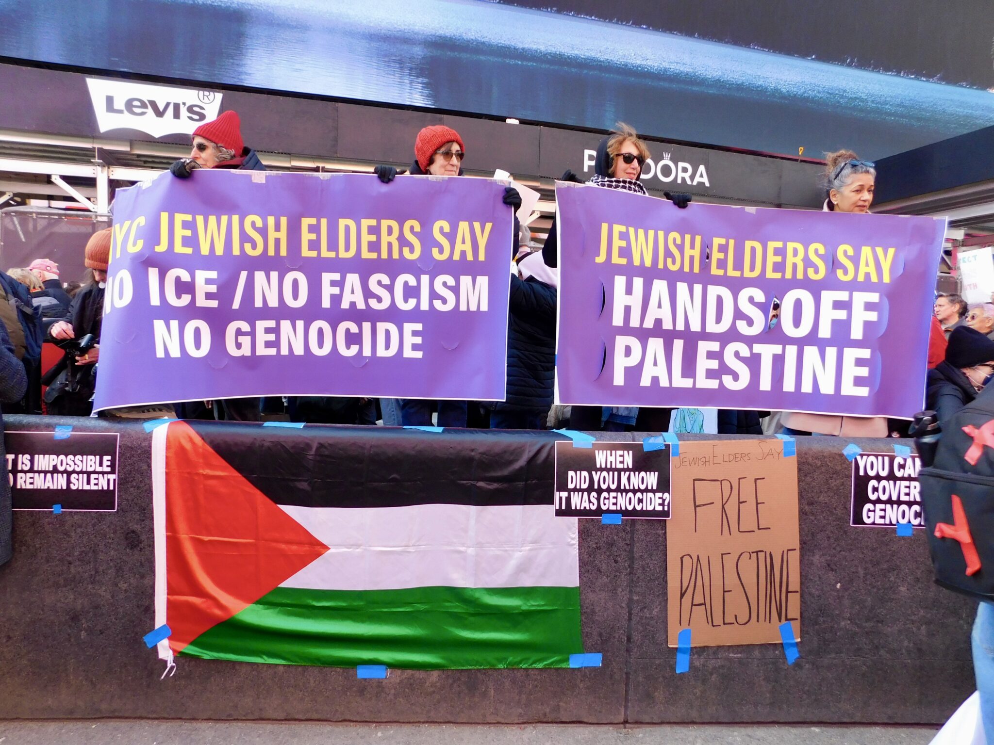 For many participants, the protest was also an opportunity to draw attention to global issues. Marianne Pita, representing Jewish Voice for Peace, joined a group of Jewish elders to highlight the ongoing violence in Palestine and Lebanon. “We think it’s very important to keep in mind the genocide that’s happening in Palestine and the way this is spreading through the Middle East,” Pita said. “The U.S. and Israel feel entitled to drop bombs and destroy cities, hospitals, homes, and schools. This atrocity is not just happening abroad; it is tied to our administration, and as taxpayers, we are responsible if we do not speak up.”
