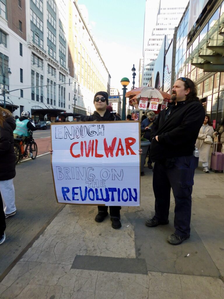 Others emphasized the importance of public solidarity. Cynthia Gary told reporters, “I just think it’s important that we all show up so that the rest of the world sees we’re not on board with this.”