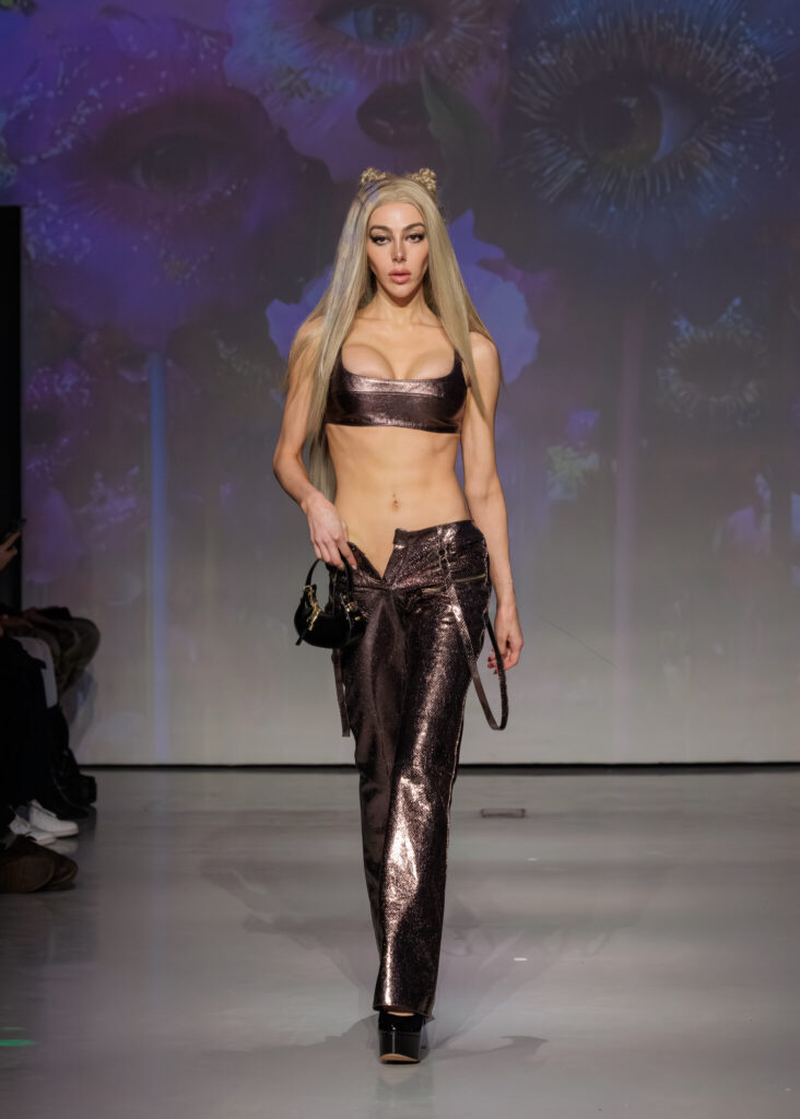 Entirely designed and produced in Italy, the collection is a study in light and spectacle. Every garment was constructed with the understanding that fashion today exists under constant observation, flashing cameras, movement on the runway, and the prolonged gaze of an audience both in the room and online. In response, NIKITA treats shine not as embellishment but as power.