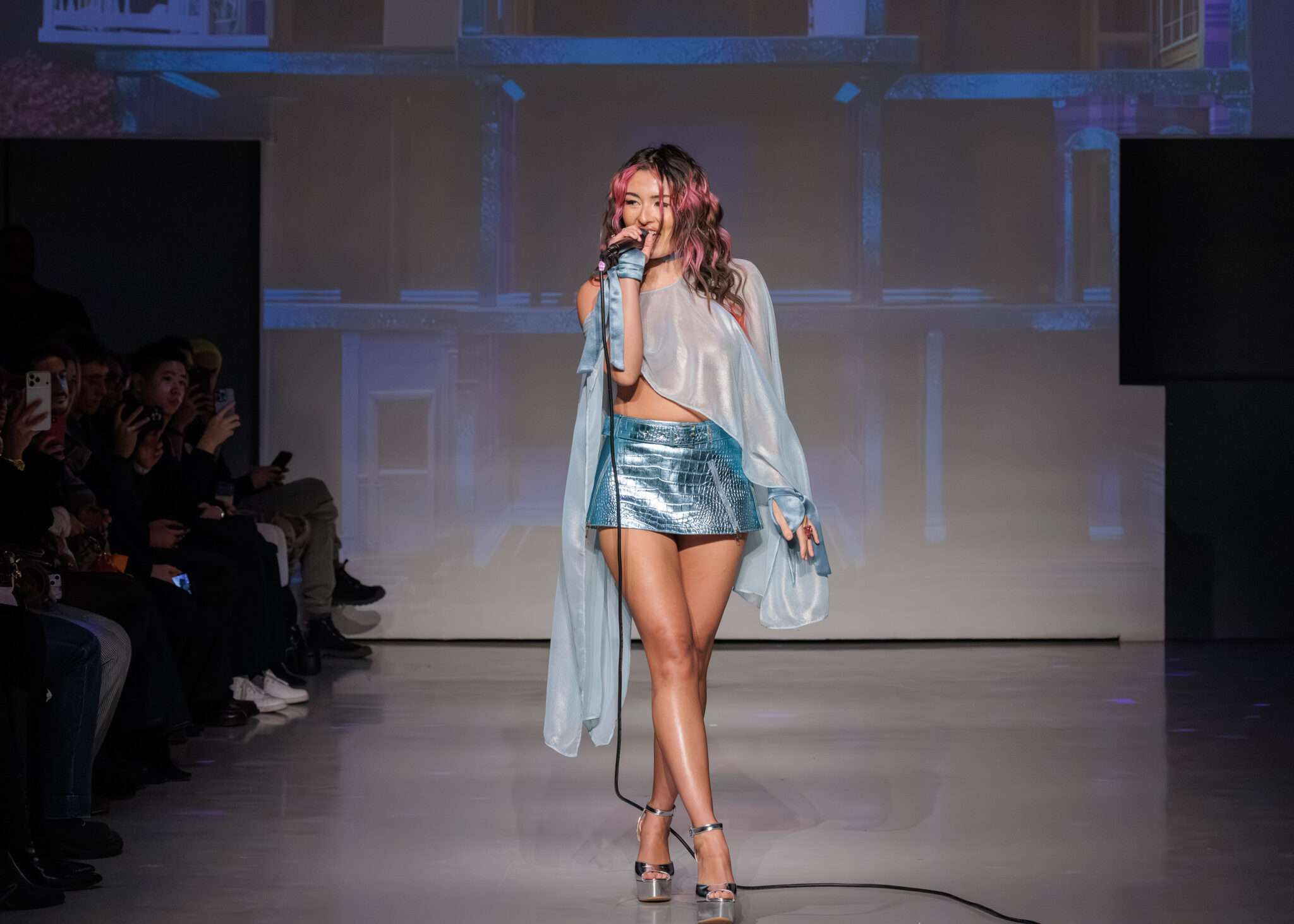 The presentation itself mirrored this philosophy. Projection mapping visuals heightened the immersive atmosphere while a live performance added theatrical energy to the runway. The result was a show that felt less like a traditional fashion presentation and more like a performance piece, a moment where fashion, music, and movement collided.